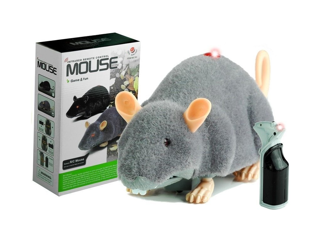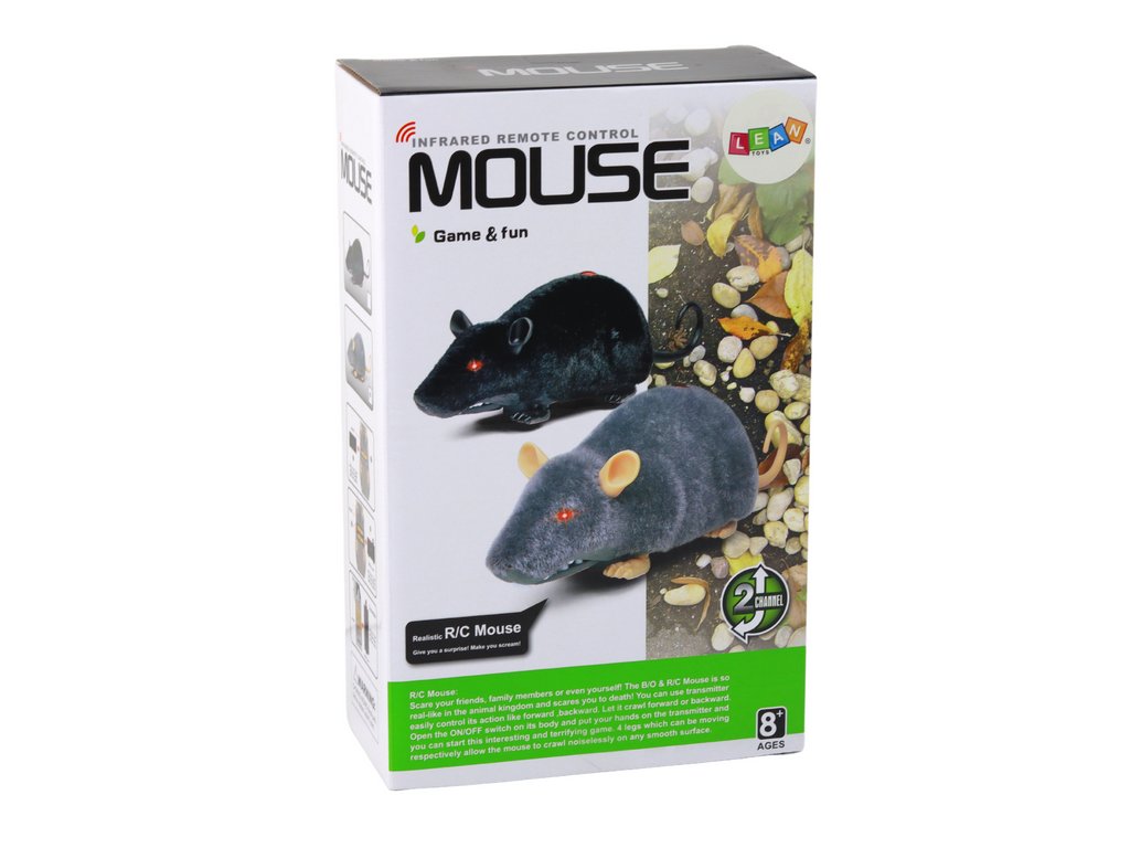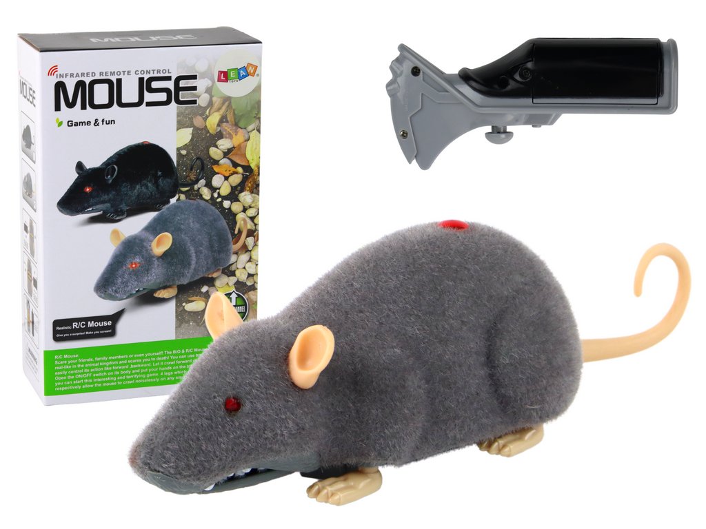 Mouse-ul cu telecomandă este o jucărie grozavă care imită cu fidelitate un animal adevărat. Este fabricat din plastic rezistent și acoperit cu un material moale care seamănă cu blana adevărată. Mouse-ul se deplasează cu ușurință pe suprafețe netede datorită roților și este controlat de o telecomandă cu infraroșu . Poate călări înainte și înapoi și își mișcă realist picioarele și coada atunci când se mișcă. Perfect pentru farse distractive și joacă acasă.