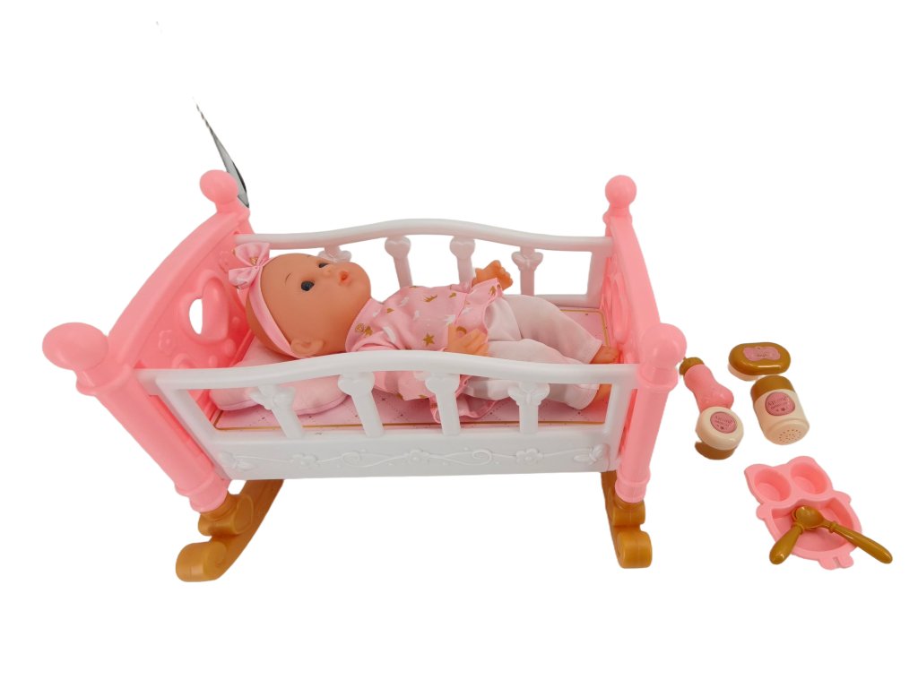 O păpușă drăguță de 30 cm vine într-un set frumos cu un pătuț roz pentru copii și accesorii de bază pentru îngrijire, permițând copiilor să se bucure pe deplin de jocul de rol de părinți. Păpușa are un corp moale, plăcut la atingere, și detalii faciale realistice care îi conferă o expresie cu adevărat fermecătoare. Este ideală pentru toate micuțele mame cărora le place să-și adoarmă bebelușul, să-l plimbe, să-l hrănească și să aibă grijă de el pe parcursul întregii zile.