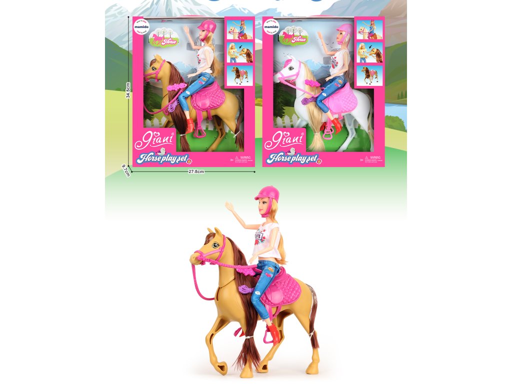 Păpușă cu cal și accesorii roz, blondă MT1180
