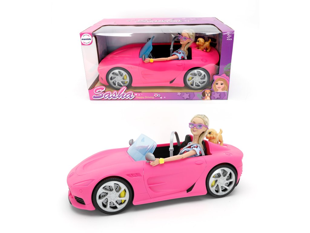 Roadsterul sportiv roz oferă detalii realiste – volan, scaune, parbriz și roți mari. Păpușa Sasha este echipată cu haine și ochelari stilați, pentru a se potrivi cu mașinuța ei. Datorită construcției ușoare, mașina este ușor de manevrat și deschide spațiu pentru povești nesfârșite pentru copii.