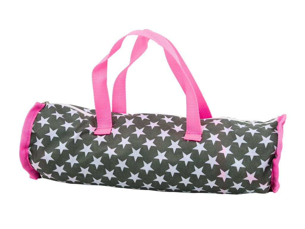Cadrul este realizat din tuburi de aluminiu cu imbinari din plastic negru. Setul vine cu o pătură și o pernă . Întregul pătuț și elementele sunt gri cu stele albe cu elemente roz. Poate fi desfășurat și depozitat cu ușurință într-o geantă portabilă, astfel încât să-l poți avea mereu cu tine.