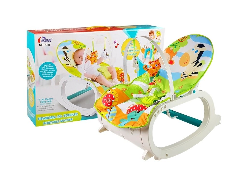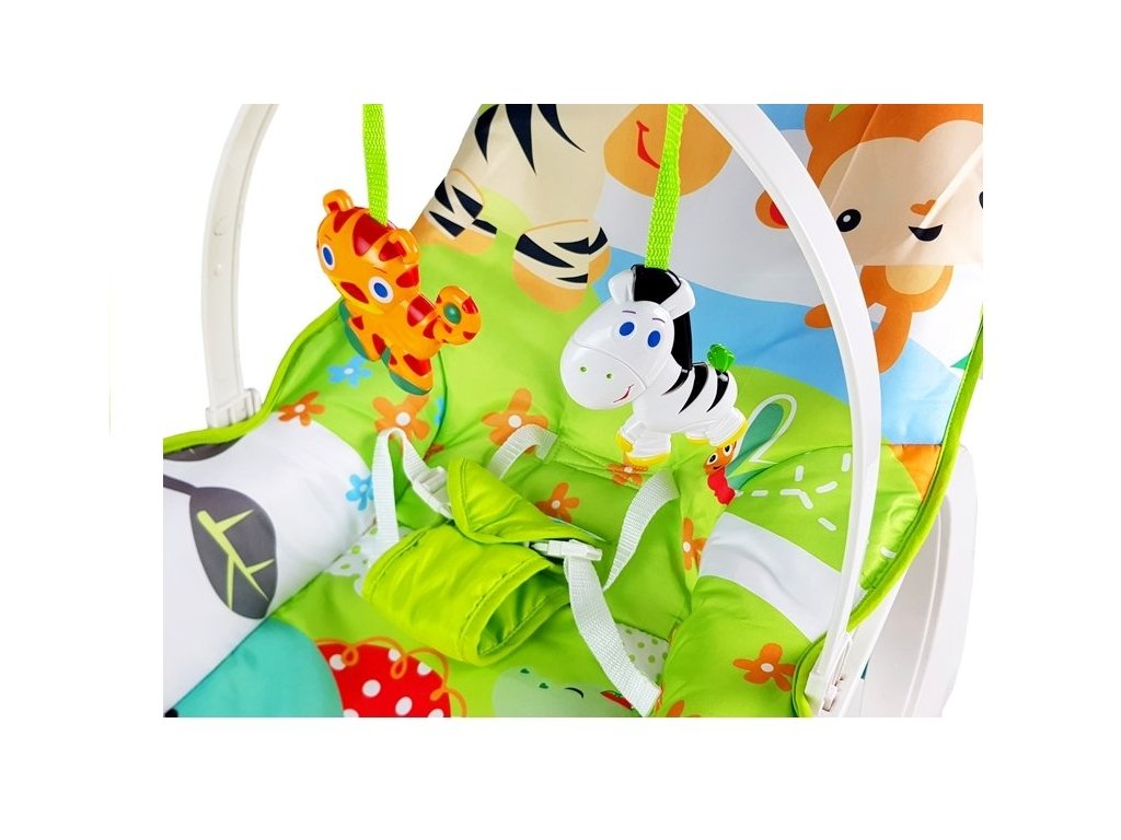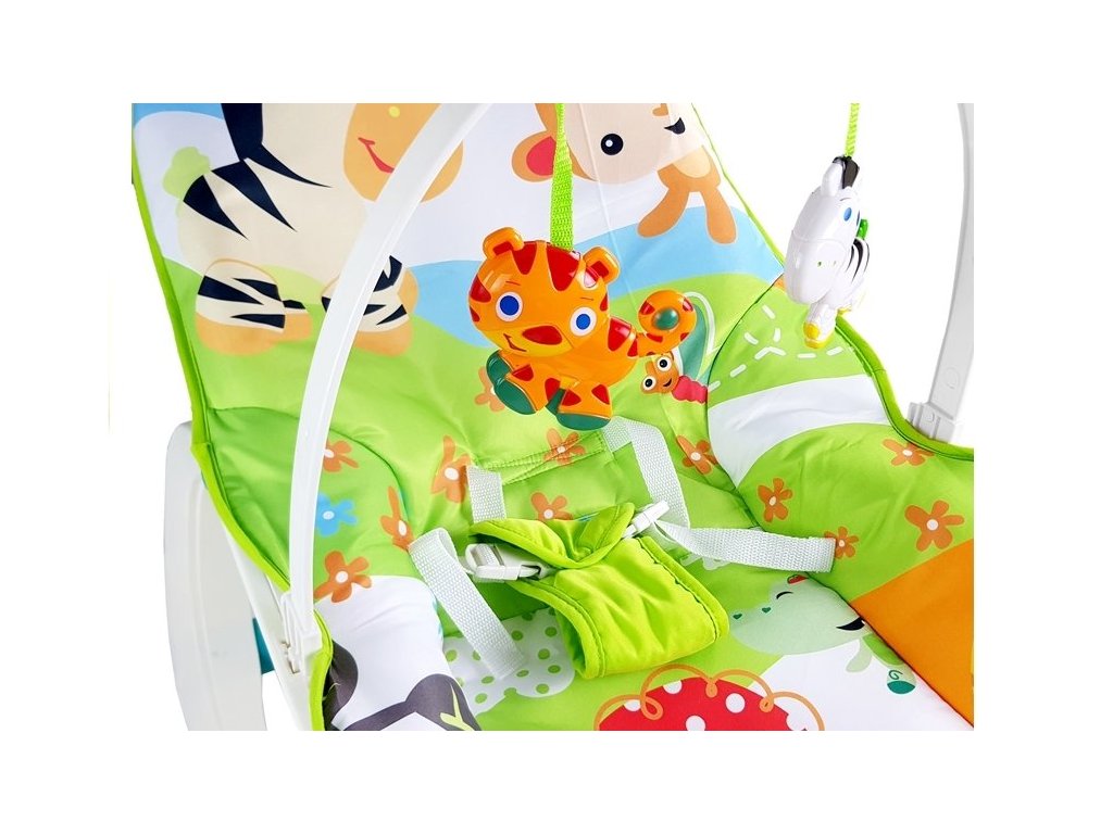 Un pat confortabil pentru bebelusi in care copilul se poate relaxa si se poate juca. Un balansoar alb și verde decorat cu motive naturale care cu siguranță va mulțumi fiecare copil mic. Șezlongul este destinat nou-născuților și copiilor mai mari - până la 3 ani, a căror greutate ajunge la maximum 20 kg.