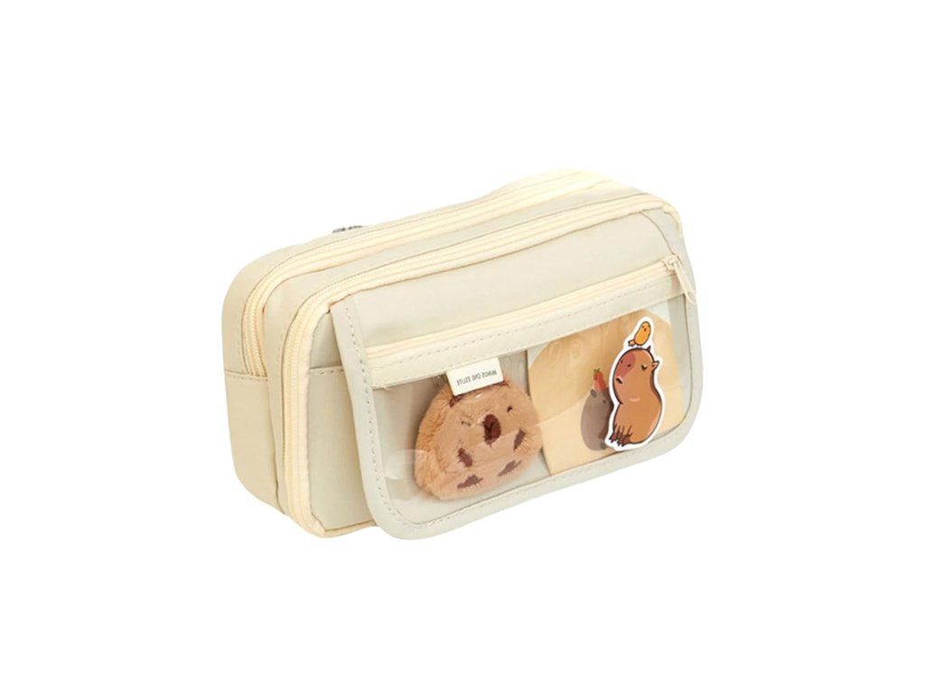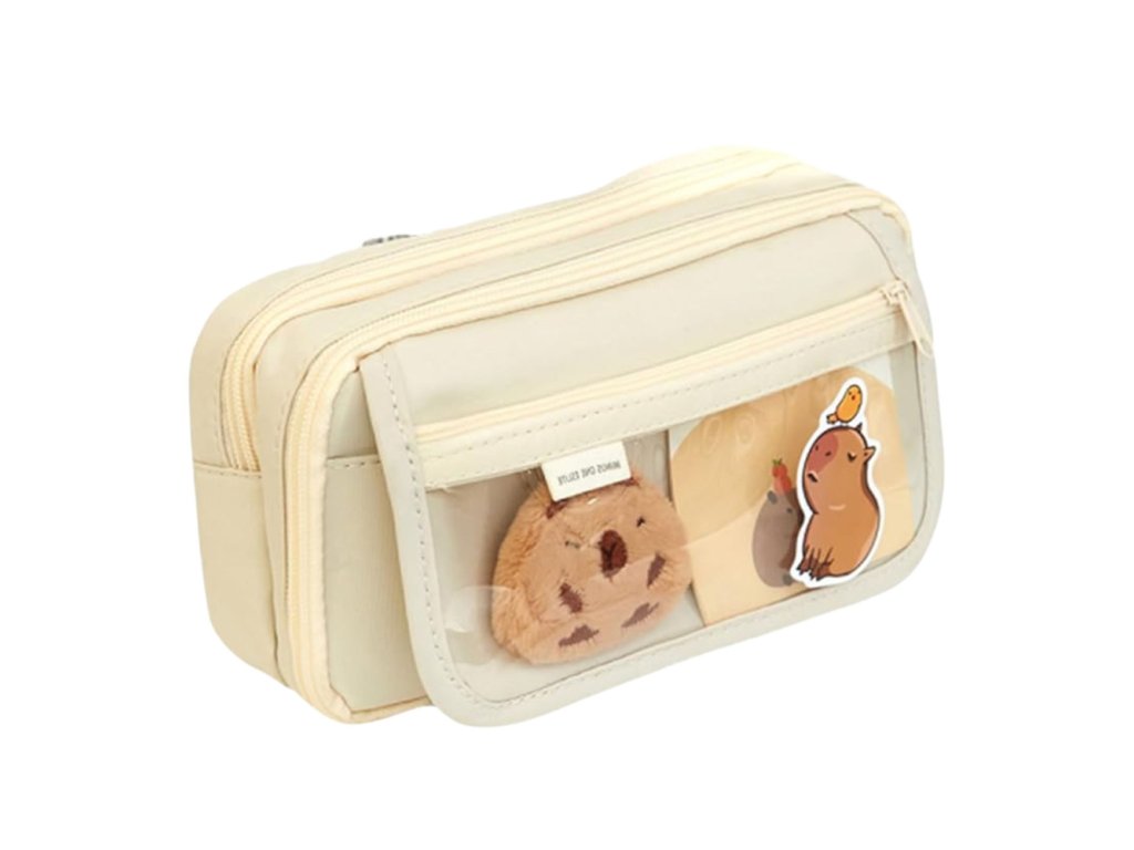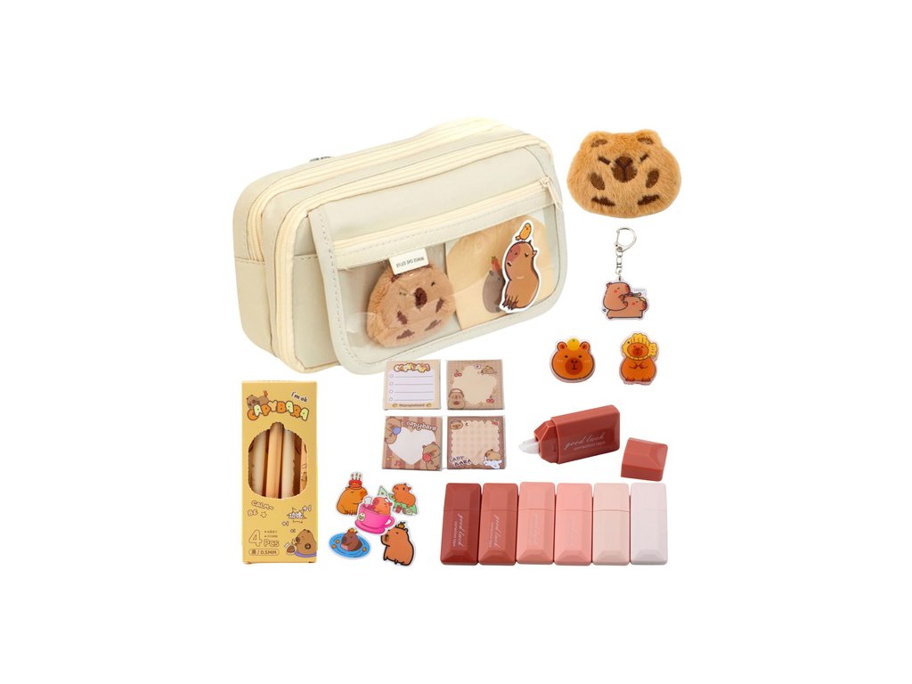 Penar școlar cu două compartimente și buzunare Capybara 21x12 cm cu accesorii