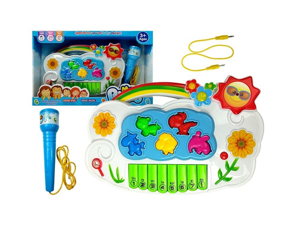 Pian interactiv pentru copiii care iubesc muzica și melodiile. Pianul interactiv vine și într-un pachet cu microfon. Pianul are o funcție de conectare cu un telefon sau alt dispozitiv.