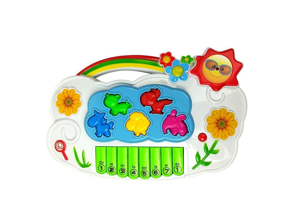 Jucăria este realizată în culori vii care încurajează jocul. Pianul interactiv pentru copii cu microfon ajută la dezvoltarea panoului muzical al copilului.