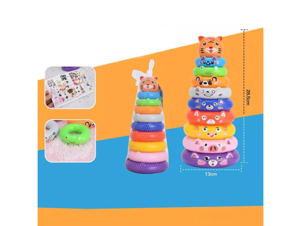 Piramida de inele de culoare cu autocolante de animale