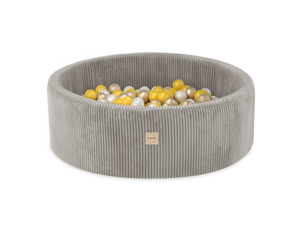 Piscina cu bile rotundă, din catifea bej, Ø 90 × 30 cm cu 200 de bile