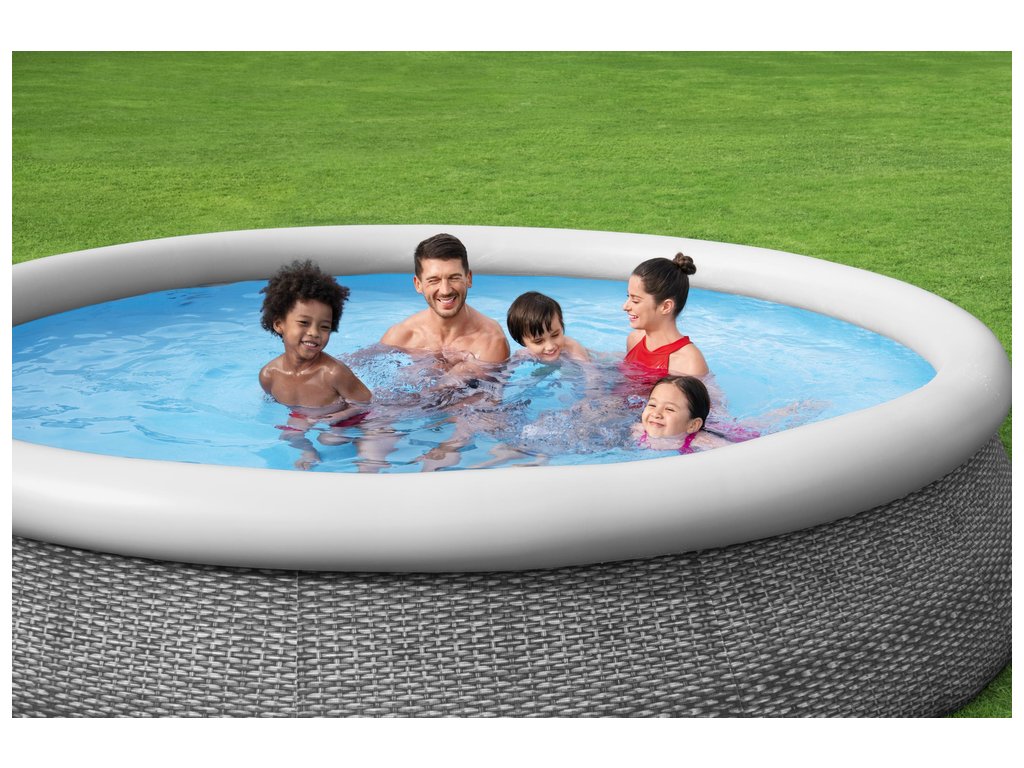 Piscina de gradina de 366 x 76 cm de la Bestway este ideala daca ai nevoie de piscina perfecta care nu iti ia mult timp pentru a o asambla, atunci acest produs este pentru tine. Această piscină se dezumflă în câteva minute, doar inelul superior necesită umflare, corpul piscinei are o căptușeală care se ridică atunci când piscina este umplută cu apă.