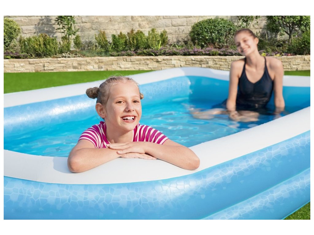 O piscină mare, de încredere, pentru întreaga familie , în care copiii pot înota liber. Piscina este ușoară, așa că o puteți muta cu ușurință acolo unde este cel mai cald în orice moment al zilei. Este ușor de umflat și dezumflat, depozitarea lui nu va fi o problemă.