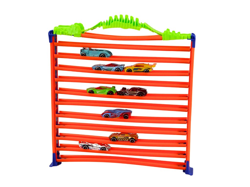 Piesele șinei se împletesc cu ușurință, făcând asamblarea șinei rapidă și ușoară. Datorită acestui fapt, copilul își poate construi propriul traseu de curse fără prea multe dificultăți. După asamblarea structurii pe garaj, părțile verzi formează un mâner stabil pentru transport. Face trusa să fie ușor de transportat și depozitat, ceea ce este util în special atunci când călătoriți sau vizitați prietenii.
