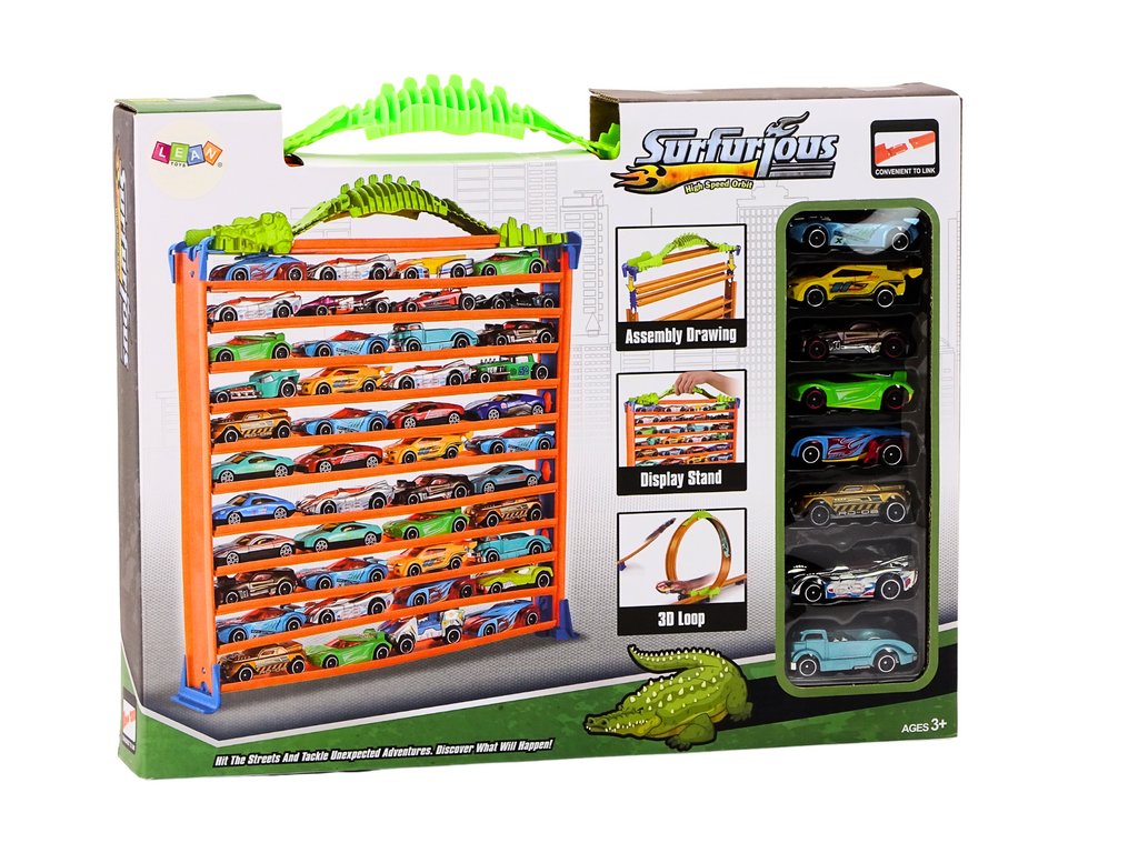 Setul vă permite să construiți o pistă cu o buclă de 360*, pe care să circule mașinile de jucărie incluse în set. După terminarea curselor, setul poate fi ușor transformat într-un garaj impresionant. Piesa buclă oferă o mulțime de emoții în timpul jocului. Mașinile de jucărie depășesc cu ușurință bucla, ceea ce garantează distracție dinamică și incitantă.