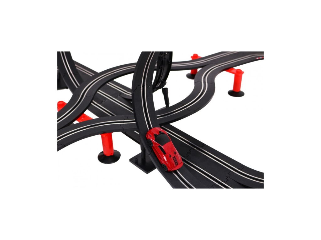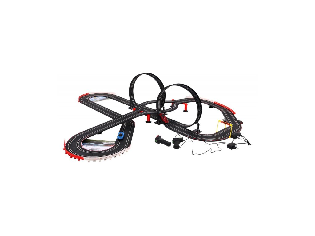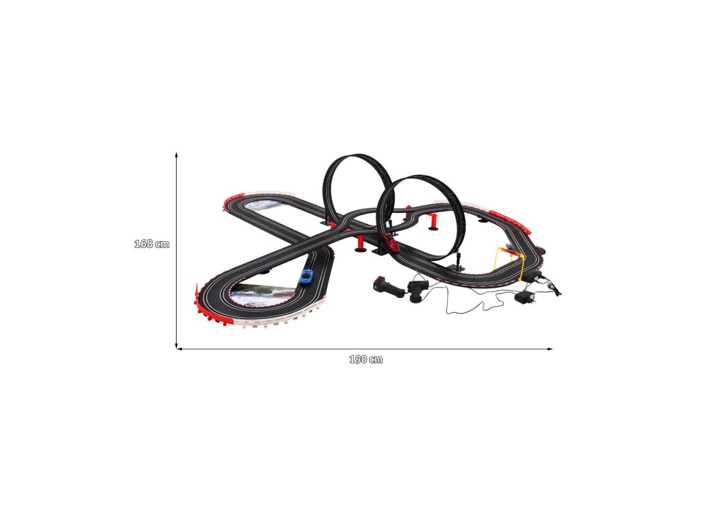 O pistă mare de curse cu două mașini de jucărie este un răsfăț pentru toți pasionații de curse de mașini. Lungimea pistei este de 1020 cm, dimensiunile pistei dupa asamblare sunt 190 x 168 cm, scara este 1:43. Pista este alimentată de o rețea de 220V, 12V. Luminile din față ale mașinii de jucărie se aprind în timpul conducerii. Pista auto este pentru toți copiii de la 3 ani.