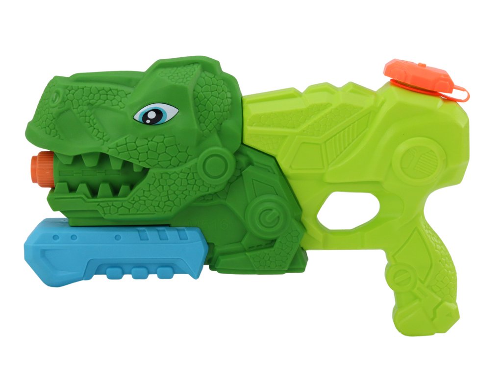 Cu dinții și fălcile sale caracteristice, dinozaurul va lovi de teroare adversarul tău. Pompând mânerul, apa din rezervor pulverizează fălcile dinozaurului. Rezervorul conține aproximativ 1000 ml de apă. Pistolul este verde cu elemente portocalii.