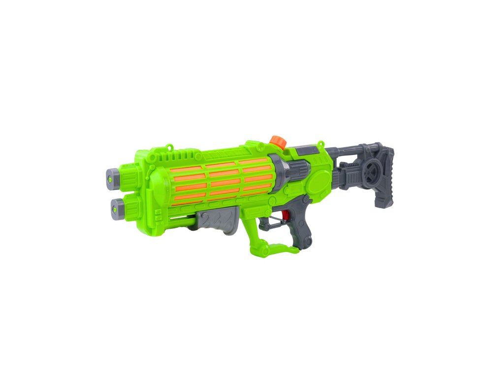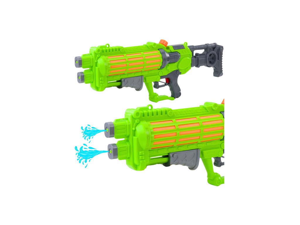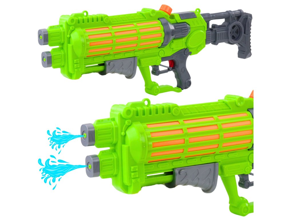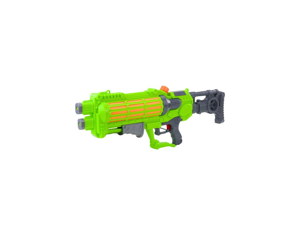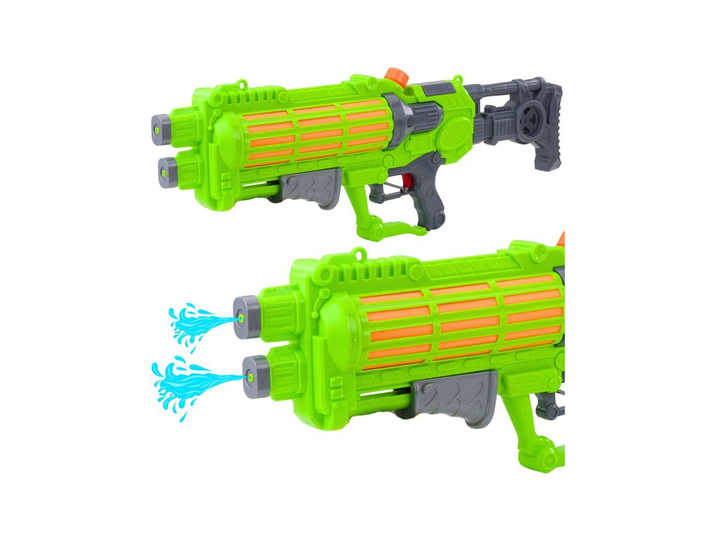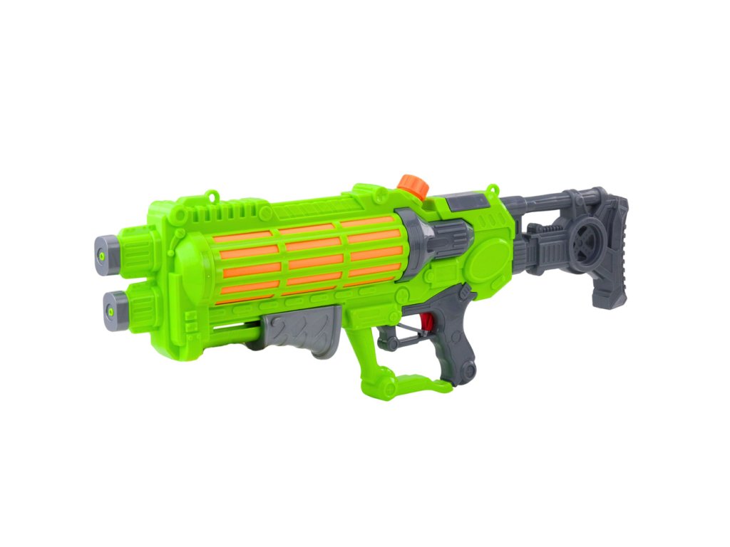 Pistolul cu apă mare, de culoare verde neon, este o garanție a unei distracții reușite în grădină, pe plajă, lângă lac sau în timpul excursiilor de vacanță. Datorită lungimii impresionante și capacității mari a rezervorului, acest model oferă o serie lungă de atacuri cu apă fără a fi nevoie de reumpleri frecvente.