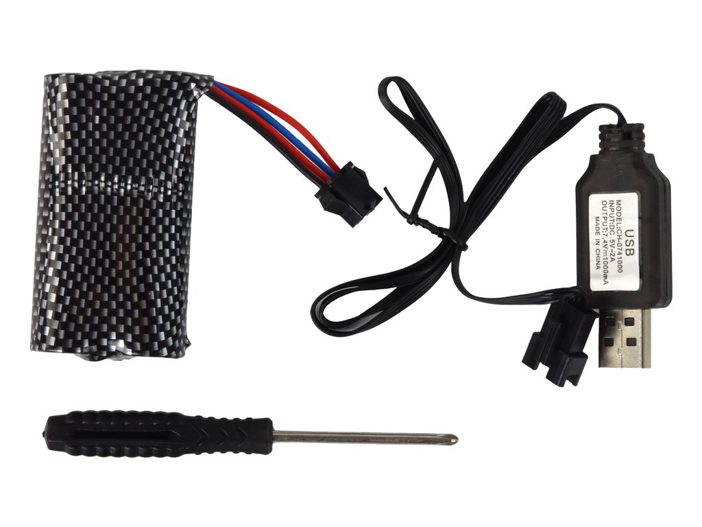 - Pistolul este alimentat de o baterie de 7,4V, care este inclusă în pachet, împreună cu încărcătorul original.
