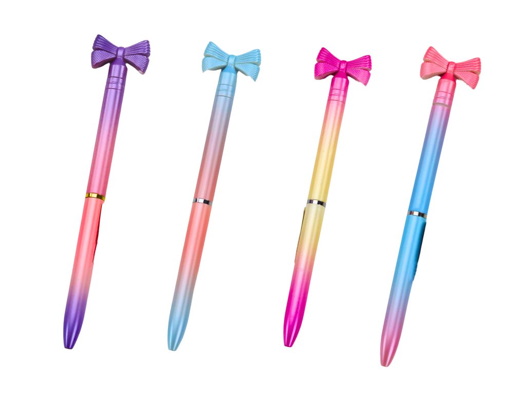 Acest stilou unic combină eleganța și funcționalitatea. Are o fundita la sfarsit care ii confera un aspect sofisticat. Cerneala albastră face ca stiloul să fie un partener ideal pentru utilizarea de zi cu zi, precum și pentru ocazii speciale. Este o alegere excelentă pentru cei care doresc să adauge farmec și eleganță notițelor sau corespondenței lor.