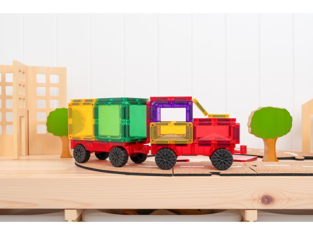 Acest set de construcție magnetică deschide noi posibilități de construcție și mișcare - Oferă copiilor spațiu pentru creativitate și oportunitatea de a-și crea propria lume plină de vehicule!