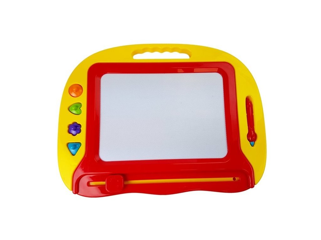 Tabla magnetică de desen este o jucărie universală și simplă pentru toți copiii. Copilul învață simțul estetic și își dezvoltă abilitățile creative. Setul este format dintr -o planșă de desen , un creion magnetic și 4 ștampile.
