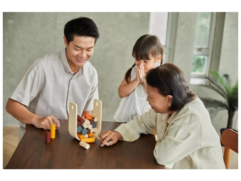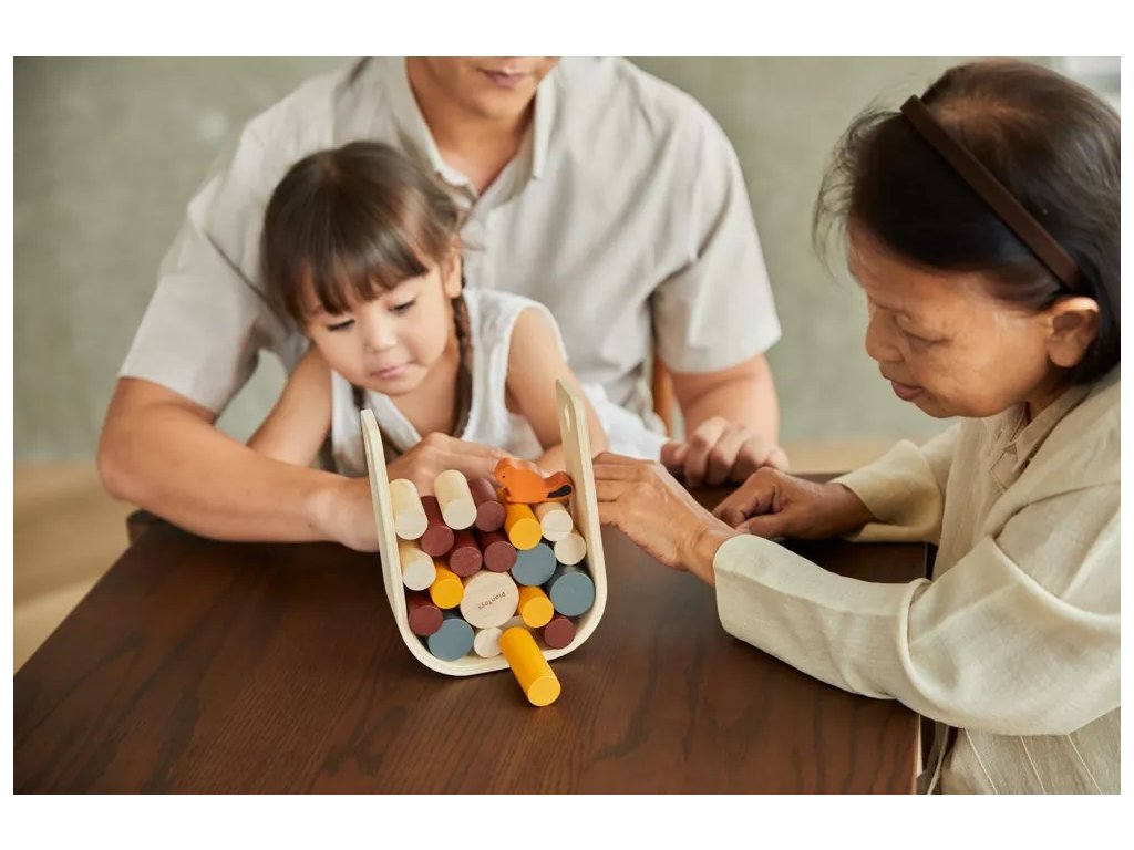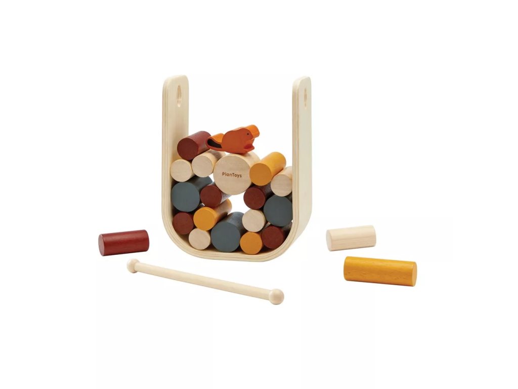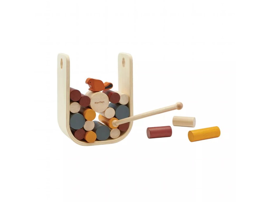 Îmbunătățiți gândirea strategică și coordonarea ochi-mână cu jocul din lemn Barajul cu castori de la marca PlanToys. Jucătorii folosesc alternativ bățul de lemn atașat pentru a împinge buștenii și, în același timp, încearcă să împiedice căderea castorului.