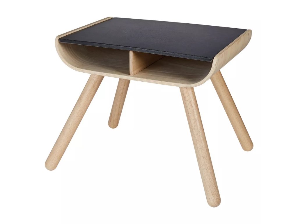 Masa este fabricată din lemn masiv de arbore de cauciuc. Blatul este fabricat din material PlanWood și a fost colorat organic cu pigment negru. Copiii pot desena cu creta pe blat, iar blatul poate fi șters cu o cârpă umedă. Masa are dimensiuni speciale, astfel încât copiii să ajungă ușor la ea. Include două compartimente pentru depozitarea lucrurilor necesare.