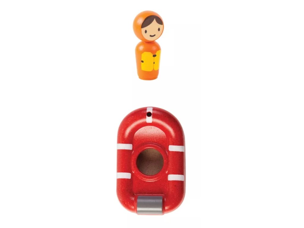 Supravegheați țărmurile și salvați-i pe cei blocați pe mare. Cu această barcă de lemn, copilul poate juca rolul unui salvamar și poate dezvolta un joc imaginativ și interactiv.