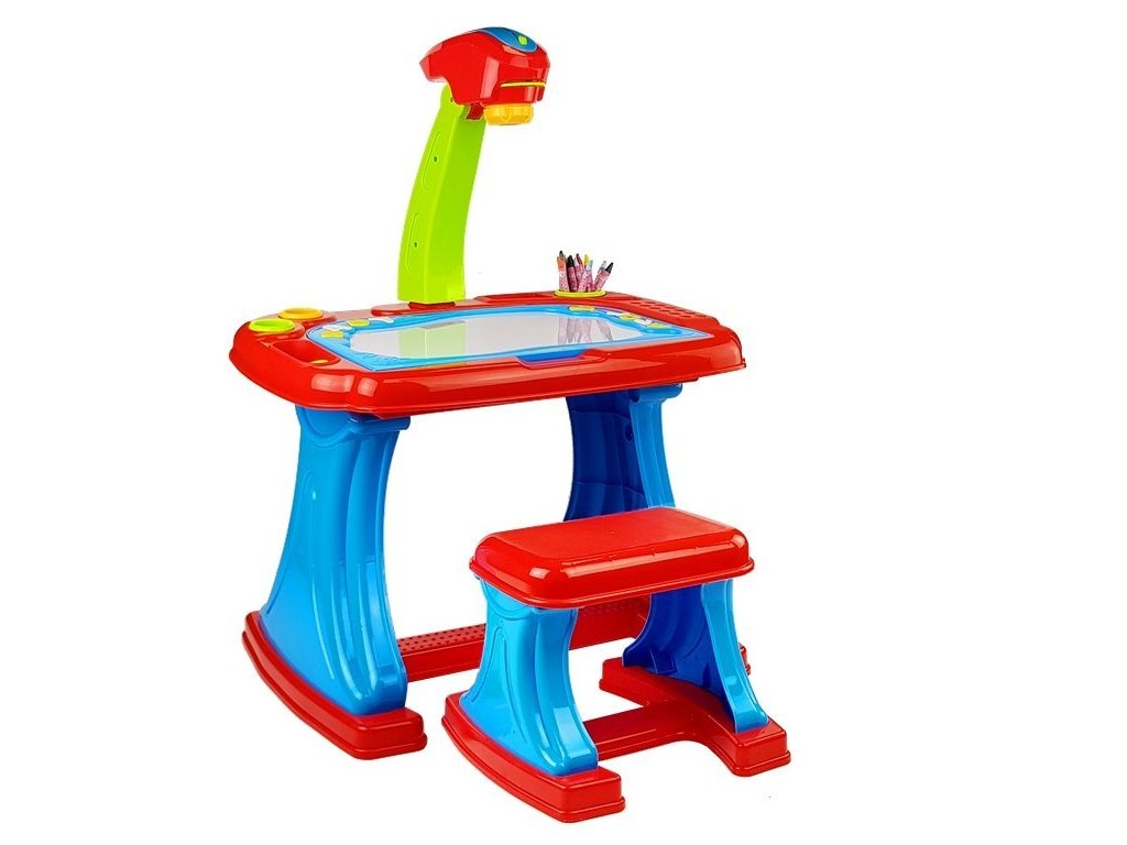 Asamblarea mesei este foarte simplă și oricine o poate face. Proiectorul poate fi amplasat la dreapta sau la stânga, astfel încât copilul să deseneze cât mai bine. Jucăria este ușor de folosit. Introduceți bateriile și discul cu imagini în proiector. După aceea, tot ce trebuie să faci este să pornești proiectorul și să-l configurezi. Tot ce trebuie să faci este să pui hârtie sub proiector și copilul poate începe să deseneze.