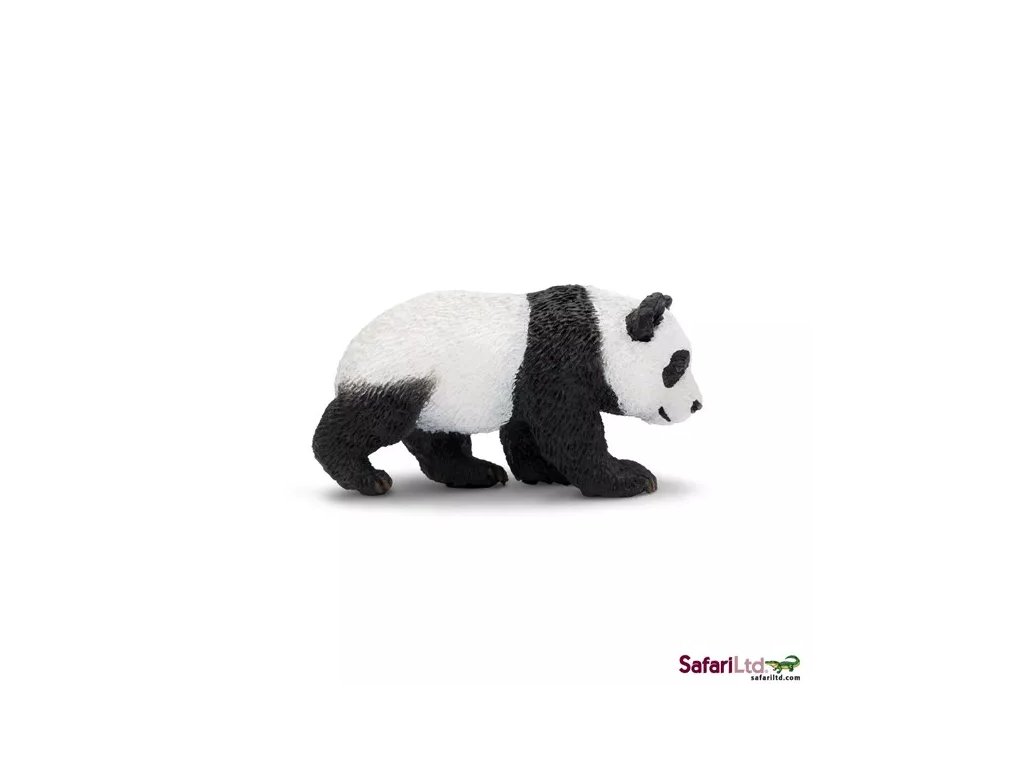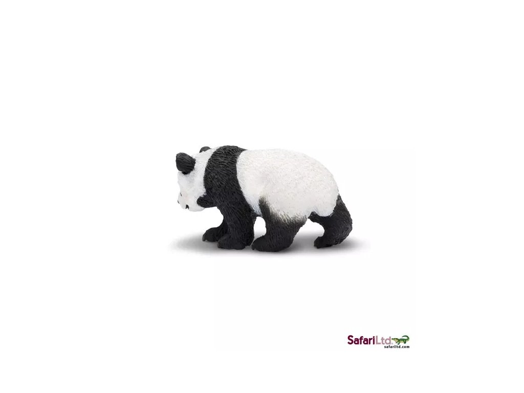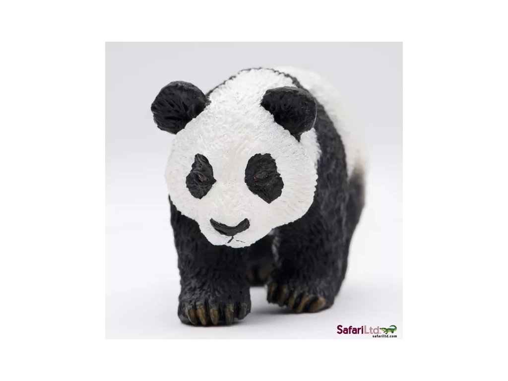 Un pui de panda este alb la naștere. Această figurină prezintă indivizi mai dezvoltați, cu o colorație unică, pregătiți să învețe să trăiască în sălbăticie.