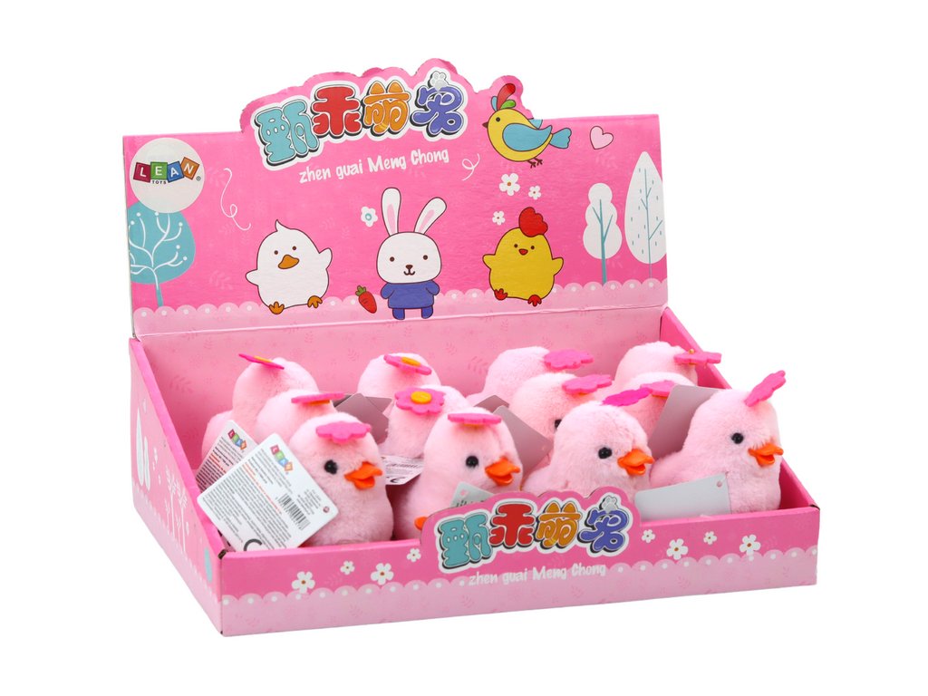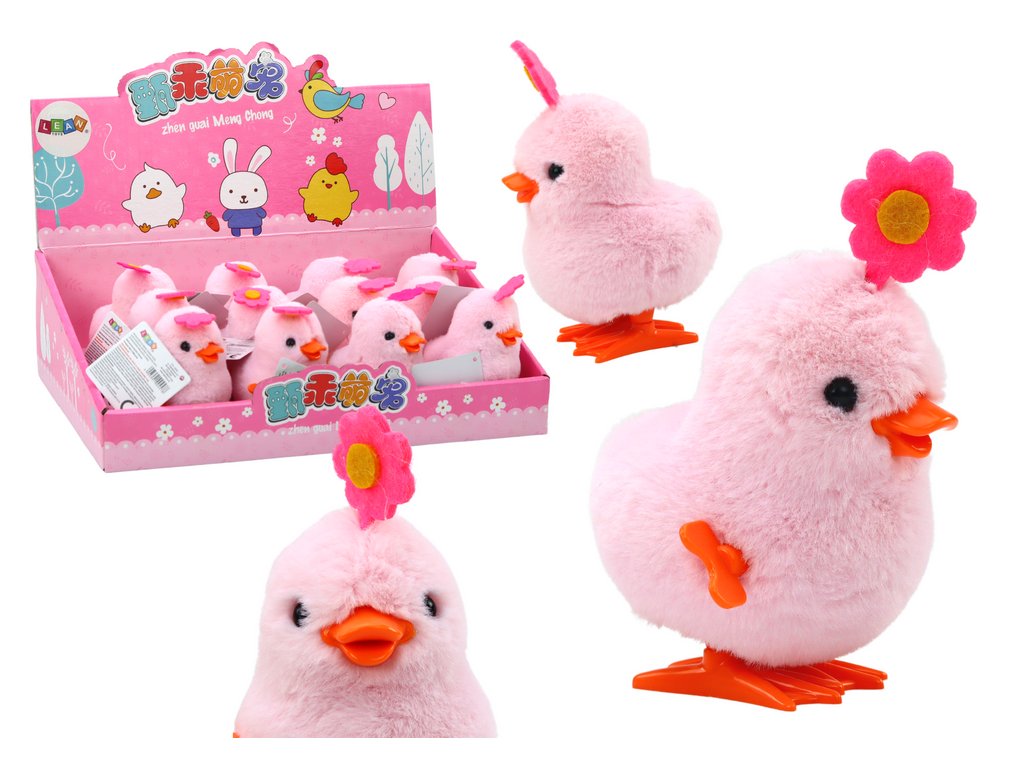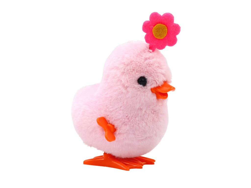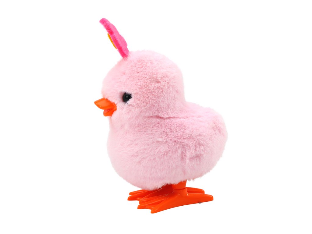 În vârful capului puiului se află o floare mică, roz-galben, care îi adaugă farmecul și îl face și mai drăguț și mai feminin. După ce întinde jucăria, puiul începe să sară, ceea ce este garantat să aducă un zâmbet pe chipul fiecărui copil. Mișcările lui sunt pline de energie și bucurie, făcându-l un partener ideal pentru joacă și râs.