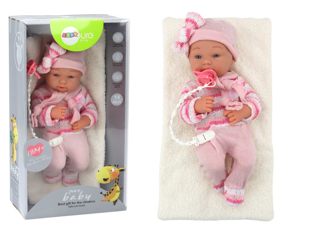 În plus, setul include o suzetă pe un sfoară care este atașată de hainele păpușii și o pătură moale.
