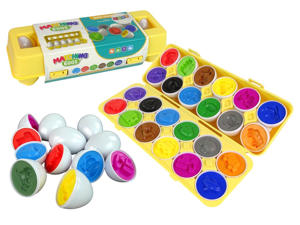 Puzzle-ul creativ în formă de ou va cuceri cu siguranță inima fiecărui mic fan al mașinii. Setul conține până la 12 ouă, care ascund diferite forme și culori ale vehiculelor sub coajă. Distracția constă în conectarea celor două jumătăți pentru a forma un întreg. În ciuda aparențelor, aceasta nu este o sarcină ușoară; pentru ca ouăle să se conecteze, acestea trebuie să se potrivească cu forma și culoarea vehiculului.