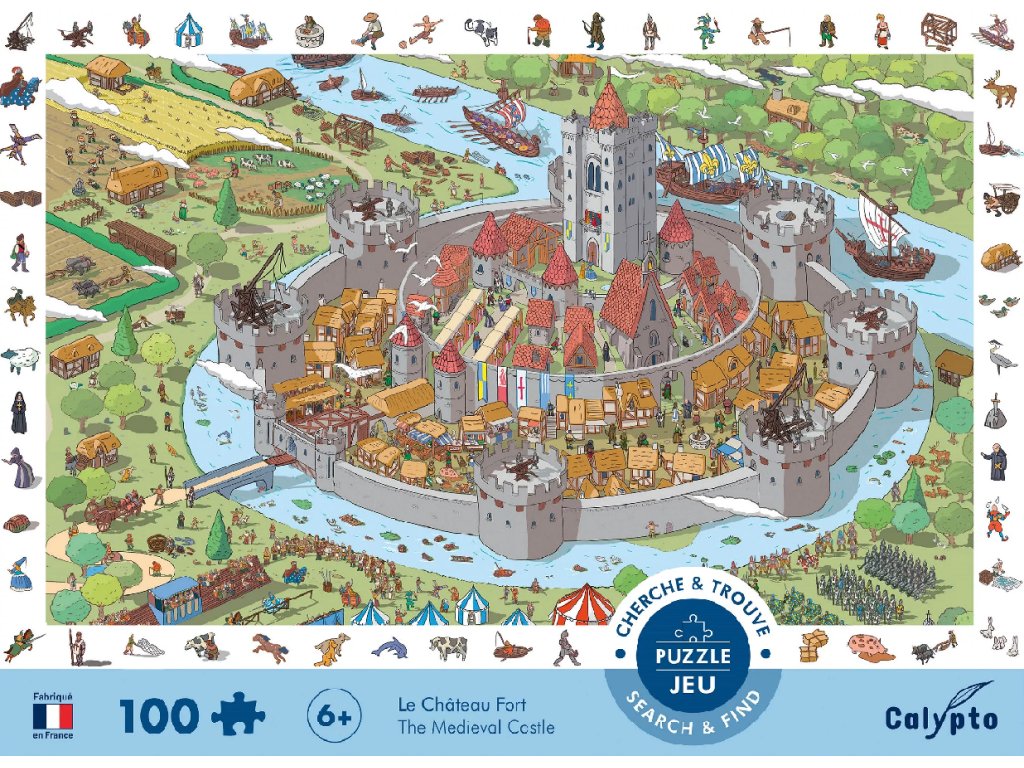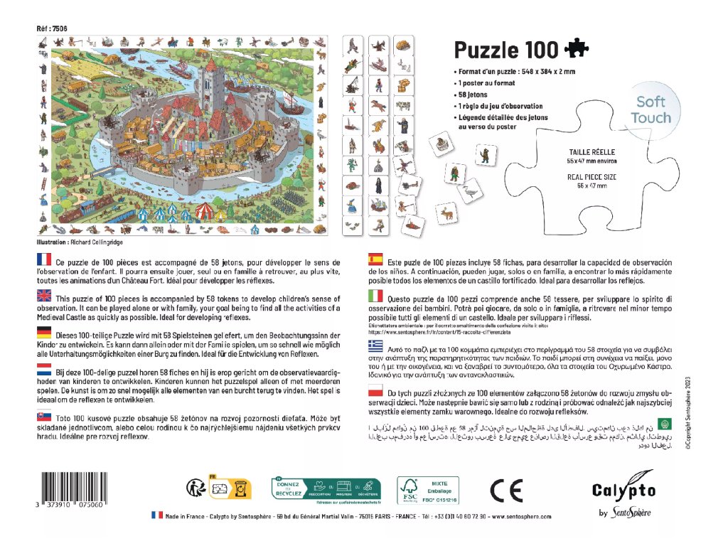 Puzzle original cu joc de căutare "La castel" de la marca franceză Sentosphere. Combină asamblarea pieselor cu o activitate suplimentară de căutare, care dezvoltă observația, memoria și gândirea logică.
