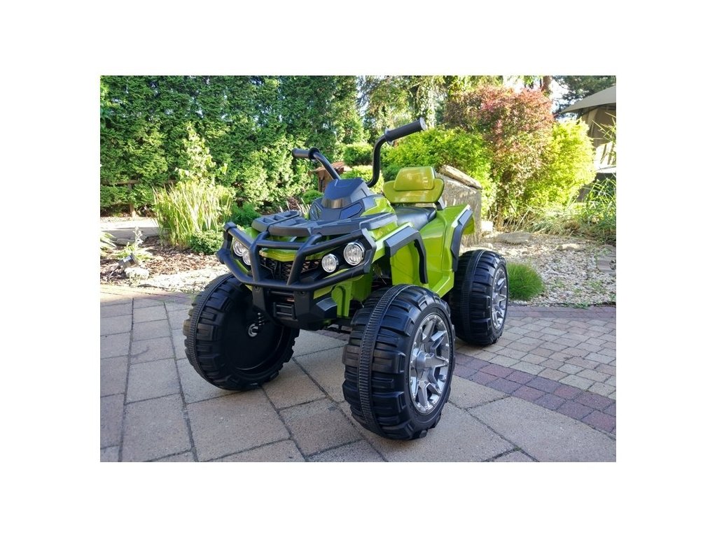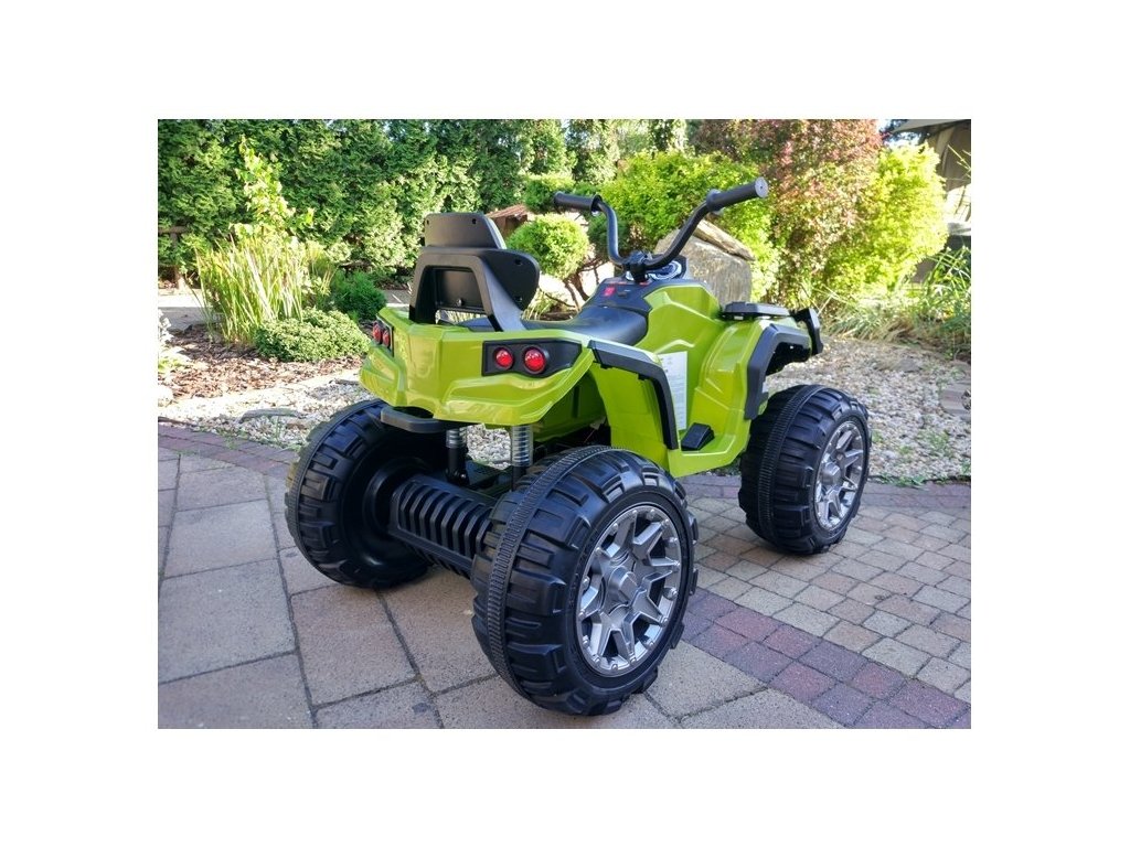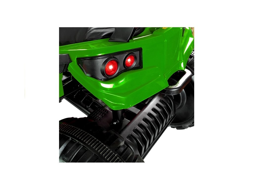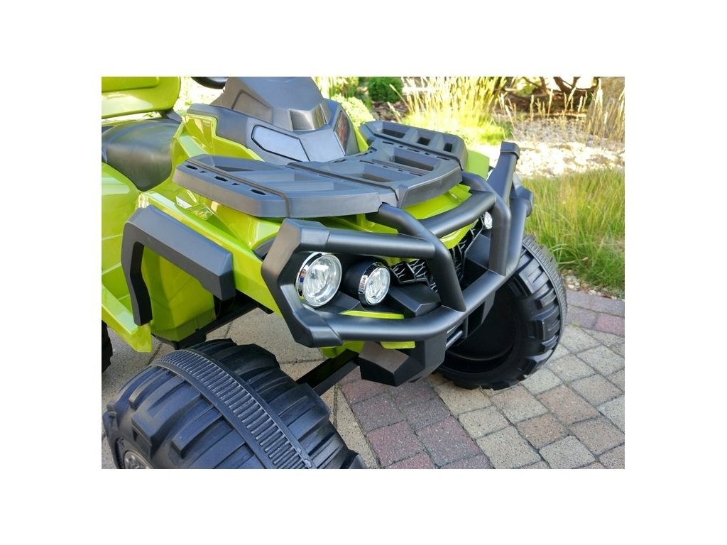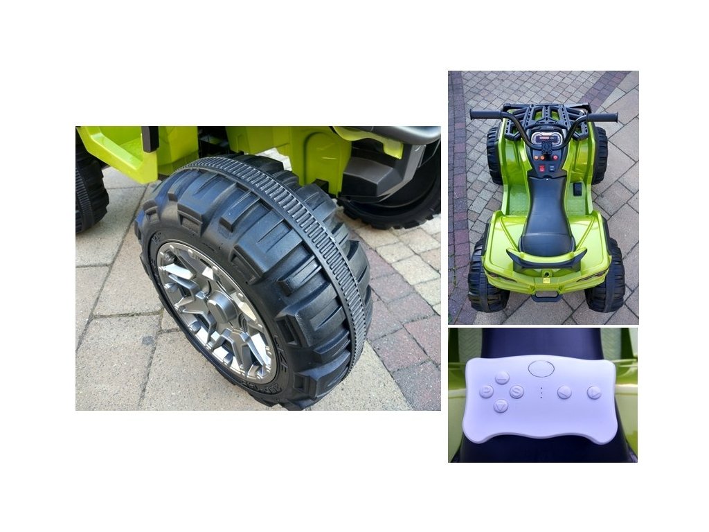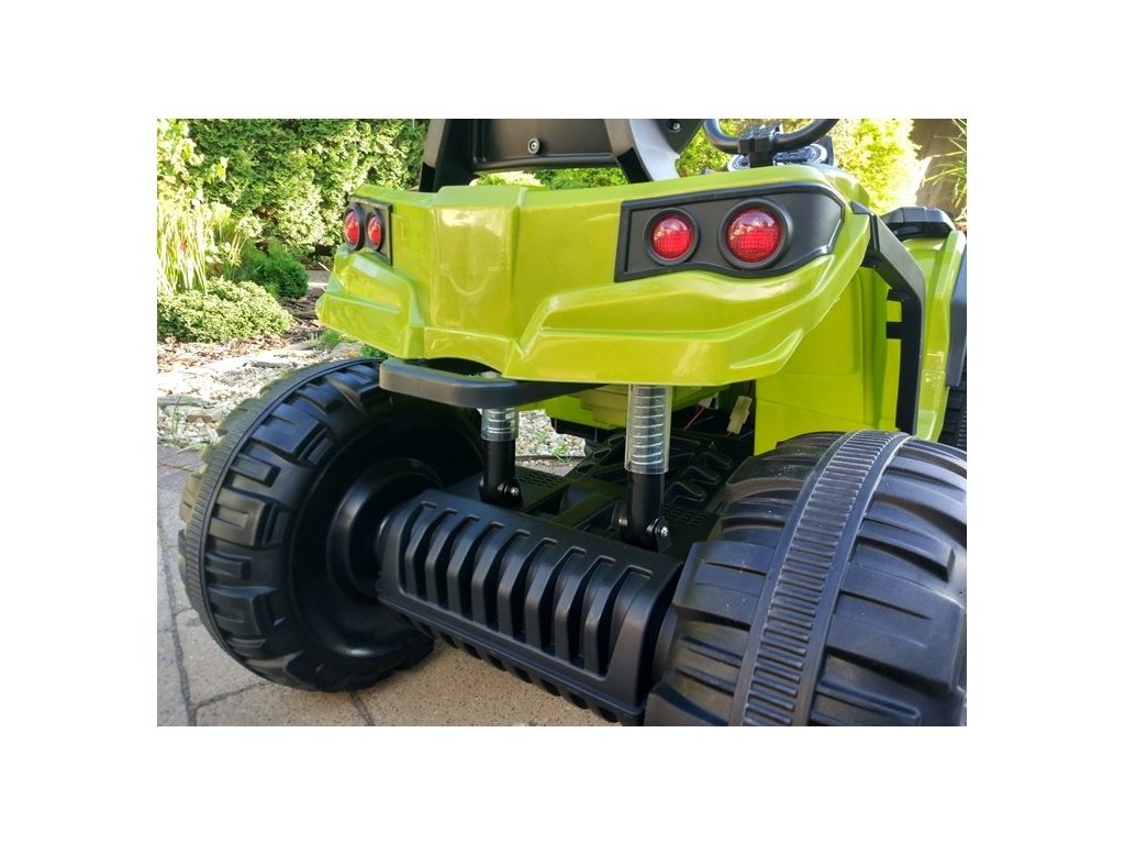 Credem că materialul de cea mai înaltă calitate combinat cu o construcție masivă și mare va satisface gustul celor mai tineri utilizatori. Designul sportiv și stilul bazat pe vehicule de curse îl vor încuraja pe copil să fie activ. Ce mai are acest aparat? Telecomanda 2.4G, lumini montate frontal si elemente cromate reale. Un scaun moale din piele ecologica, roti de cauciuc, amortizoare si frana electrica nu numai ca vor spori confortul folosirii quad-ului pentru copii, ci si siguranta acestuia.