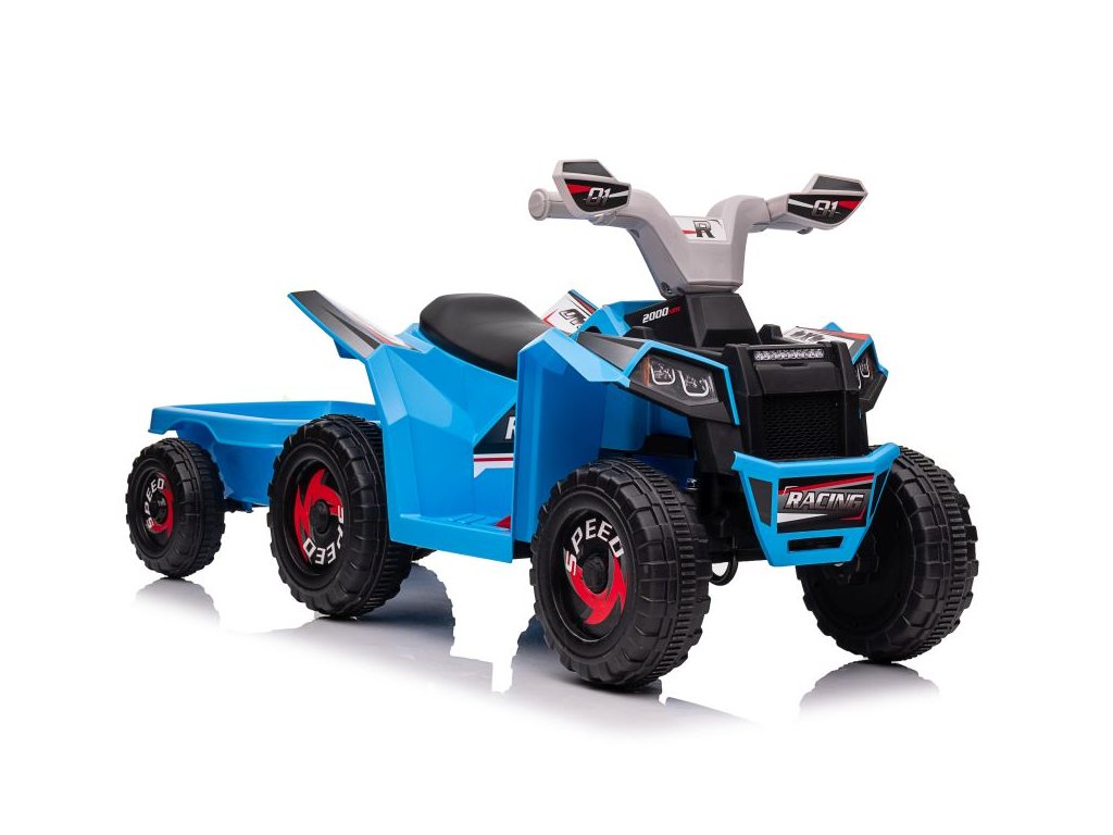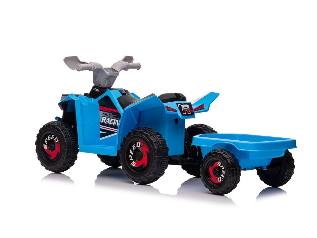 Vehiculul electric cu patru roți pentru copii are un motor de 45 W și roți largi din plastic. Vehiculul cu patru roți este destinat conducerii pe iarbă sau asfalt și capacitatea sa de încărcare este de până la 30 kg .