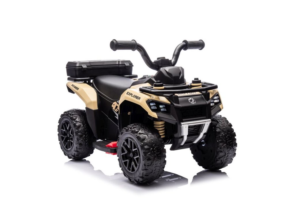 Quad-bicicleta electrica pentru copii este echipata cu un motor de 35W si roti late din spuma EVA . Echipamentul include un panou muzical . Vehiculul cu patru roți are lumini față și capacitatea sa de încărcare este de până la 20 kg .