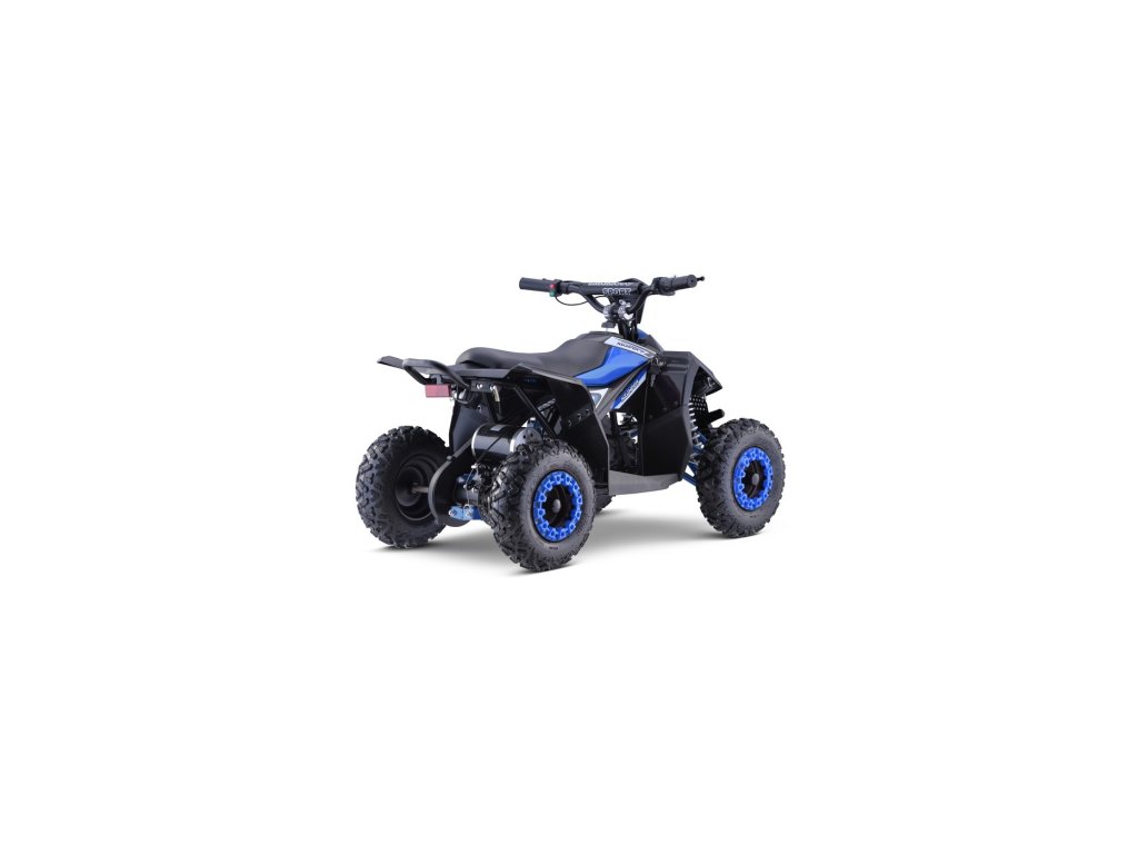 Avantajul vehiculului cu patru roti este un scaun din piele ecologica si roti gonflabile cu diametrul de 30 cm si latimea de 10 cm. Quad-ul are lumini LED frontale și un claxon. Quad-ul are frâne pe disc față și spate. Nu este posibil să controlezi quad-ul cu telecomanda. Quad-ul este pornit de la cheie și are amortizoare față și spate.