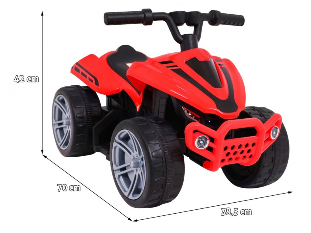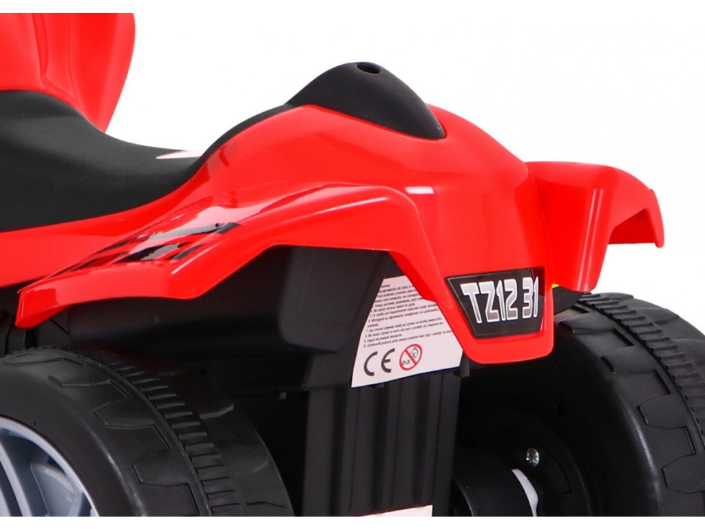 Un quad electric este o modalitate excelentă de a introduce copiii în lumea autovehiculelor. Vehiculele electrice cu patru roți oferă o mulțime de distracție, fie în timpul plimbărilor în familie sau petrecând timpul în grădină. Datorită călăriei, copilul învață să conducă și își îmbunătățește abilitățile motorii. Scaunul este foarte confortabil, are o formă ergonomică, astfel încât copilul va fi bucuros să se așeze din nou la volanul quad-ului. Quad-bike-ul este certificat de marca europeana de siguranta CE si este potrivit pentru copii incepand cu varsta de 3 ani.