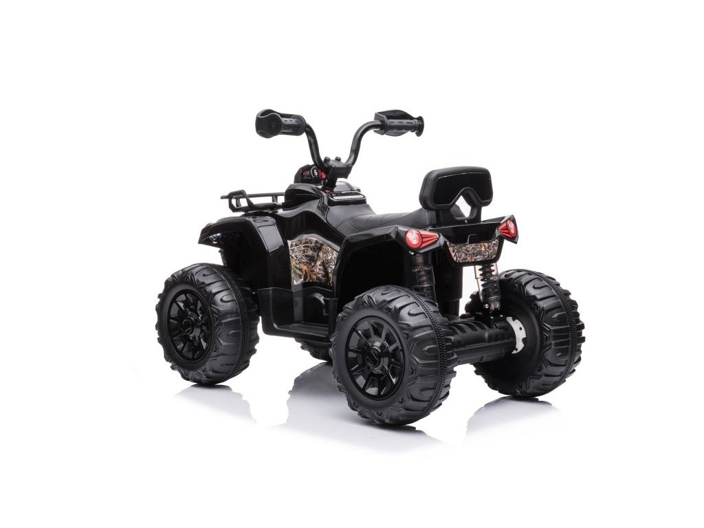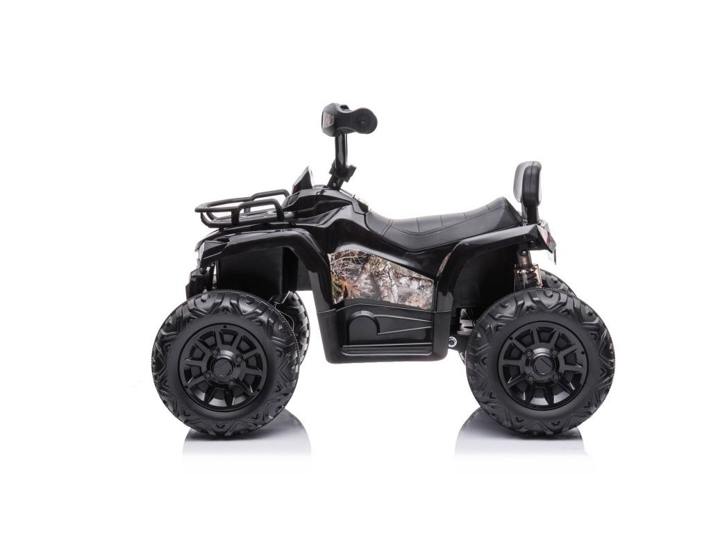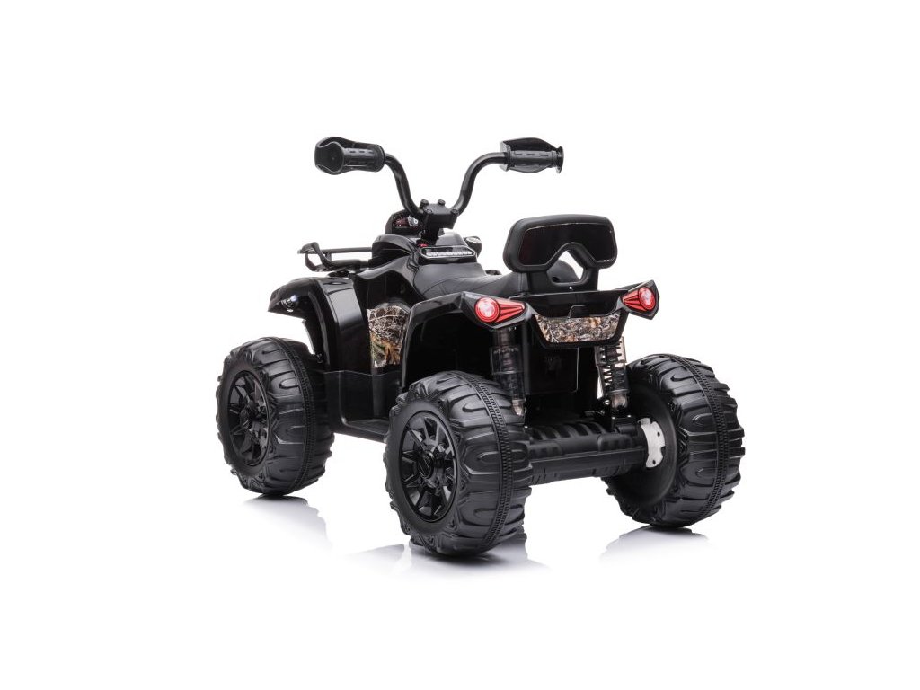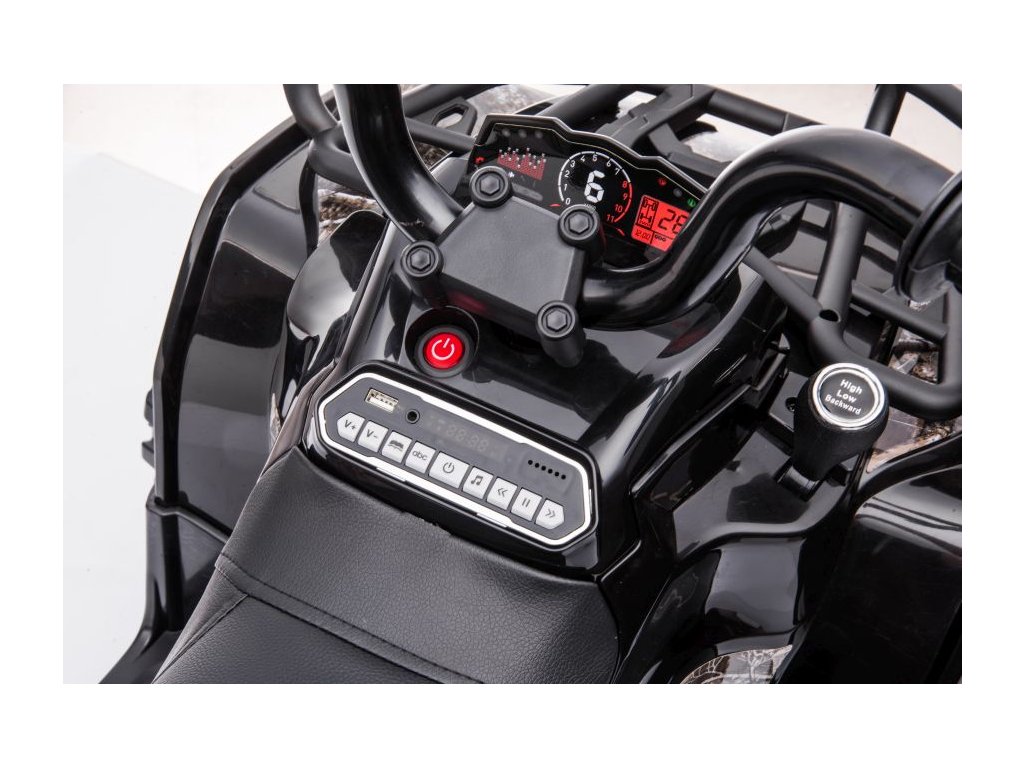 Quad electric pentru copii cu motor electric puternic, baterie cu gel și echipament bogat. In interior se poate scoate un scaun din piele ecologica si un panou muzical cu intrari pentru MP3 si USB . Quad-ul are melodii preînregistrate și emite sunete de motor la pornire. Este echipat cu lumini LED frontale.