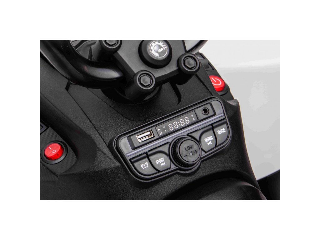 Echipamentul include un panou muzical cu intrări USB, MP3, Radio, AUX, Bluetooth și melodii preînregistrate. ATV-ul cu patru roți are lumini față și spate, permite conducerea în toate direcțiile, iar capacitatea sa de încărcare este de până la 30 kg .