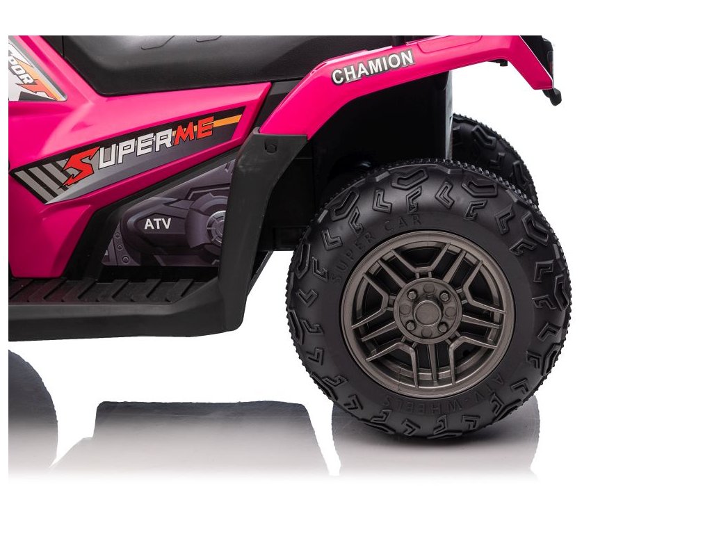 Vehiculul electric cu patru roți pentru copii este echipat cu două motoare cu o putere totală de 90W . Quad-bike-ul se descurcă cu ușurință diferite tipuri de teren, suprafețe neasfaltate și dealuri.