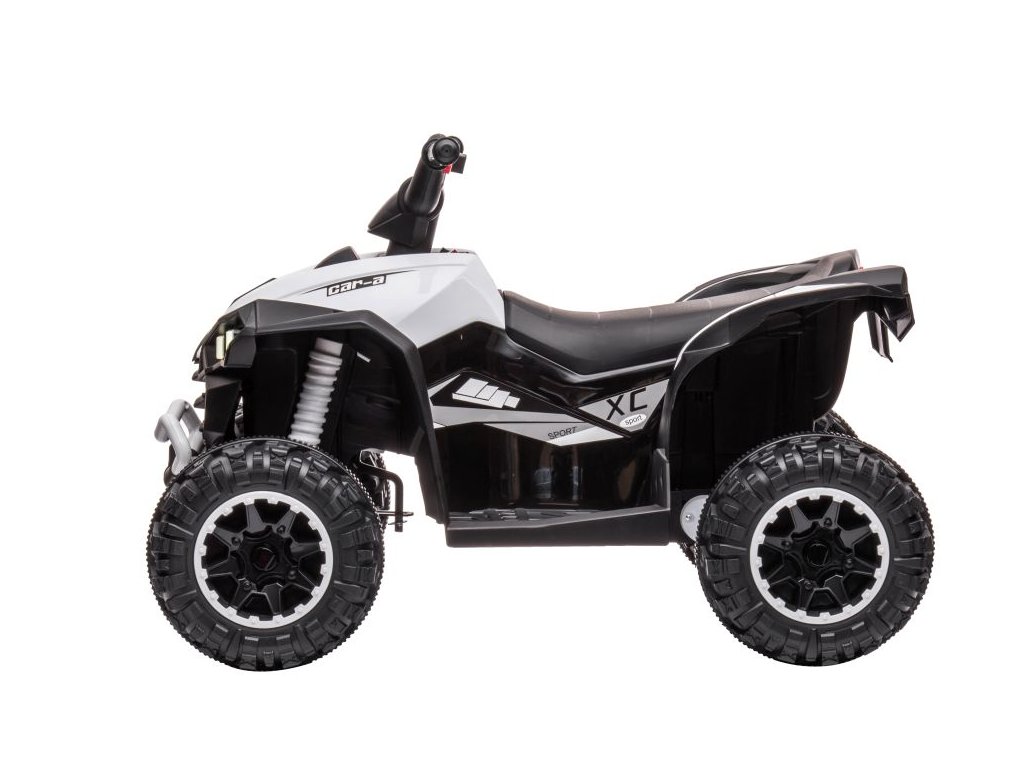 Vehiculul electric cu patru roți XC-sport pentru copii este o soluție excelentă chiar și pentru șoferii mai pretențioși. Este echipat cu o telecomandă cu un buton de siguranță Stop , care oprește imediat vehiculul și îi oprește toate funcțiile. Când porniți, veți auzi sunetele motorului și vă puteți bucura de plimbare cu muzică care poate fi pornită folosind panoul muzical bogat echipat. Vehiculul cu patru roți are două motoare cu o putere de 45W și o baterie cu o capacitate de 12V 7Ah.