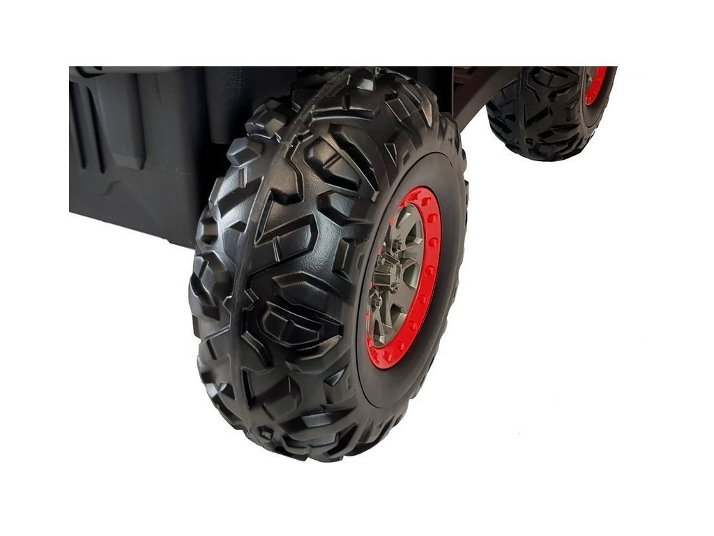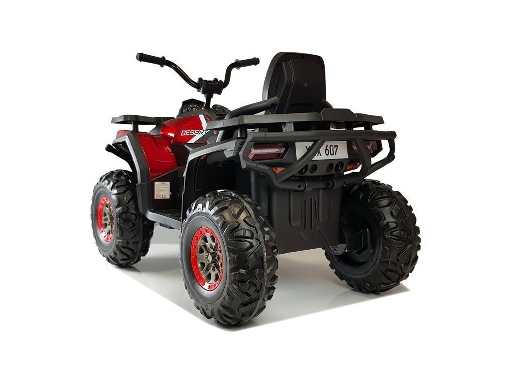 ATV-ul are o pornire lent, mergi in off-road cu viteza de 3-8 km/h. Confortul este asigurat de scaunul din piele ecologica si de rotile din spuma EVA intarita. Avantajul unui quad este un panou muzical cu intrare pentru USB, card SD si MP3, si te poti conecta si la panoul muzical datorita Bluetooth.