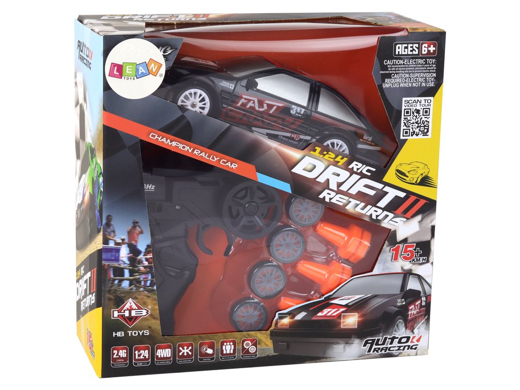 R/C 1:24 mașină sport cu telecomandă cu roți înlocuibile negre