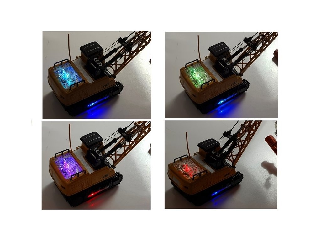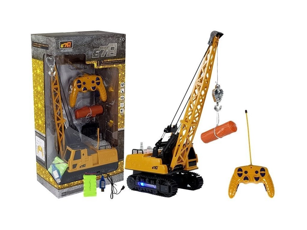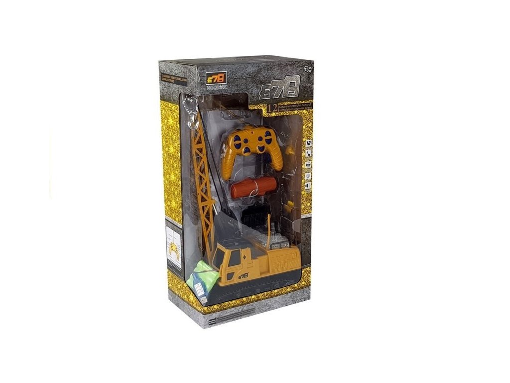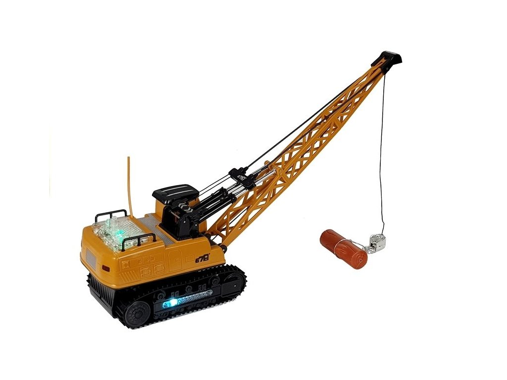 Macaraua cu telecomandă din set are multe opțiuni de control. După pornirea vehiculului cu butonul „START”, îl putem controla înainte/înapoi și în lateral. În plus, telecomanda are patru butoane responsabile cu coborârea și ridicarea brațului și rotirea cabinei.