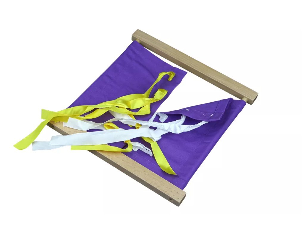 Instrument Montessori conceput pentru a exersa legarea unei funde și pentru a sprijini abilitățile practice ale copilului. Activitatea se concentrează pe dezvoltarea motricității fine, a concentrării și a independenței.