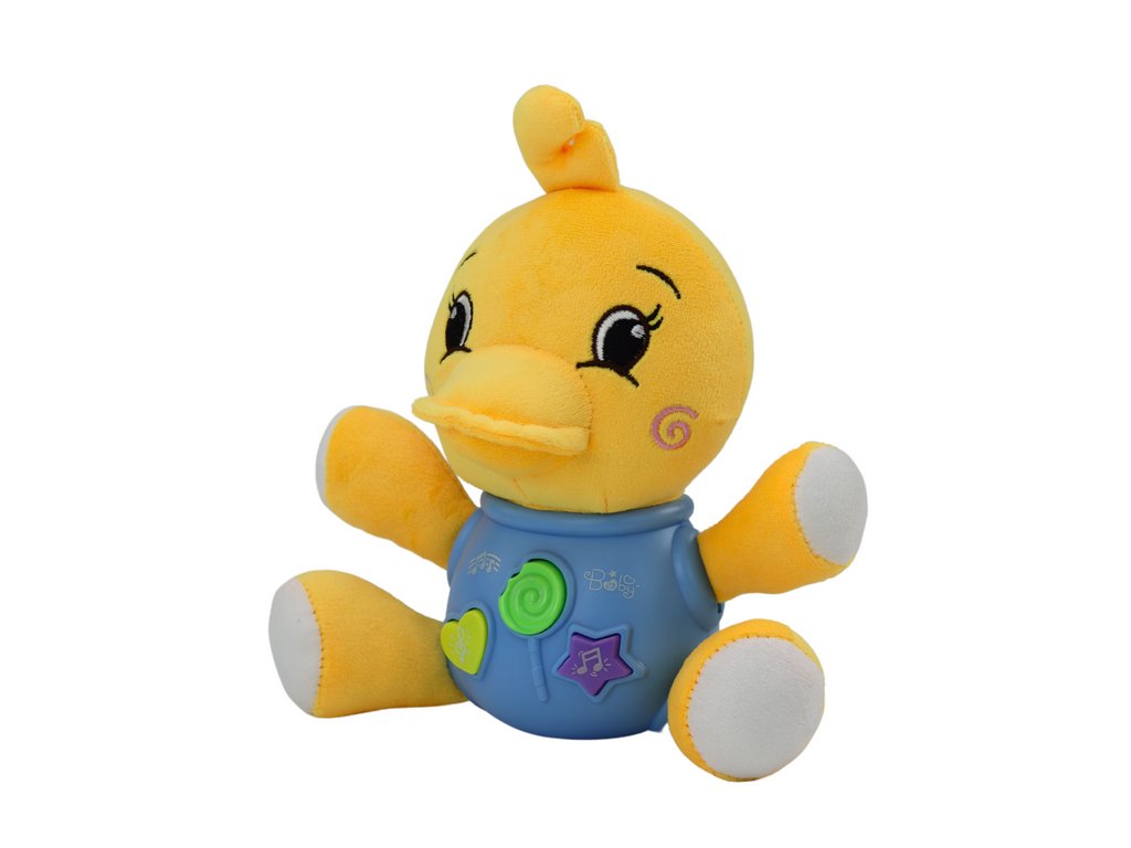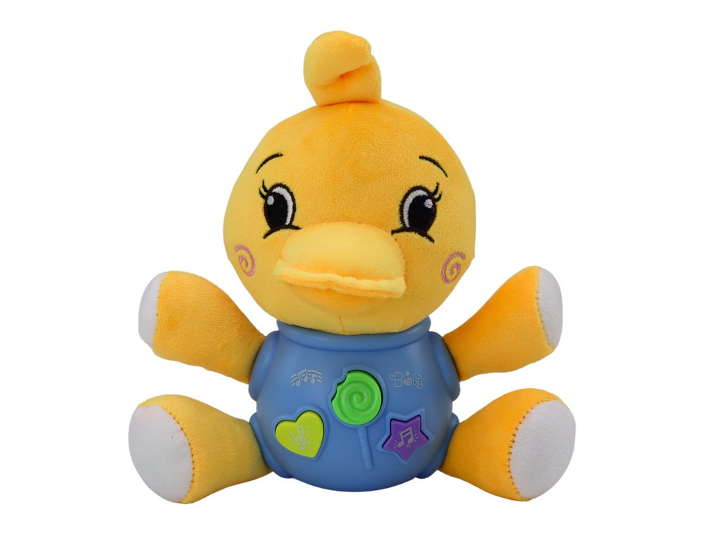 O rață de pluș interactivă care va deveni cu siguranță însoțitorul preferat al fiecărui copil mic! Este realizata din materiale de cea mai inalta calitate, foarte moi, ideala pentru pielea sensibila a copiilor. Aspectul său drăguț și textura plăcută la atingere vă invită să o îmbrățișați.