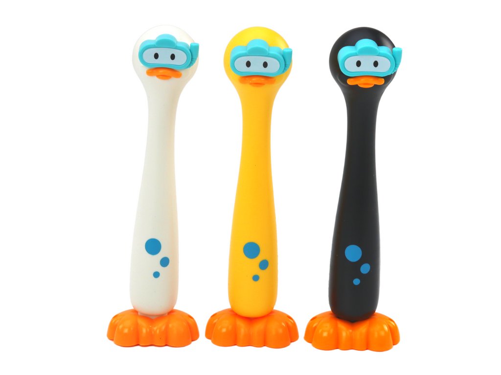 Rațele de scufundări sunt o jucărie grozavă pentru micii aventurieri cărora le place să exploreze lumea apei. Un set de trei rațe în culori diferite nu numai că aduce multă distracție, dar ajută și la dezvoltarea coordonării mișcărilor. Datorită greutății fiecărei rațe, copiii pot aștepta cu nerăbdare scufundări captivante și exersarea abilității de a le găsi sub apă. Această jucărie este ideală pentru piscină, pentru scăldat în cadă și pentru a cunoaște mediul acvatic pentru prima dată.