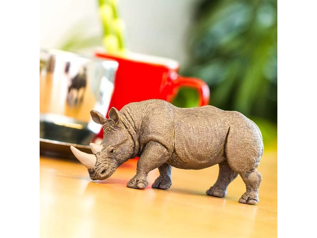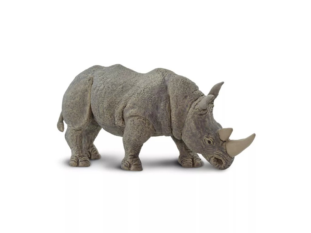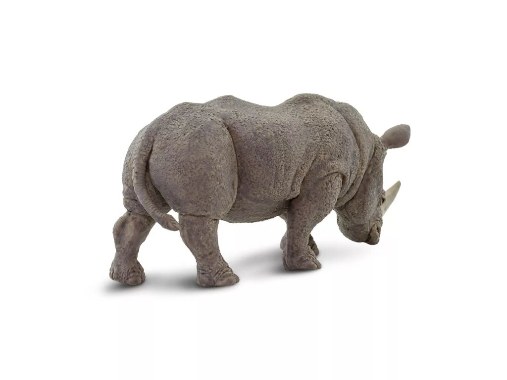 Rinocerul alb se caracterizează printr-un bot lat tipic, cu un buză superioară dreaptă, două coarne care ies din bot și o formă pătrată a gurii. Modelul surprinde aceste caracteristici recognoscibile și oferă o idee fidelă despre aspectul animalului.