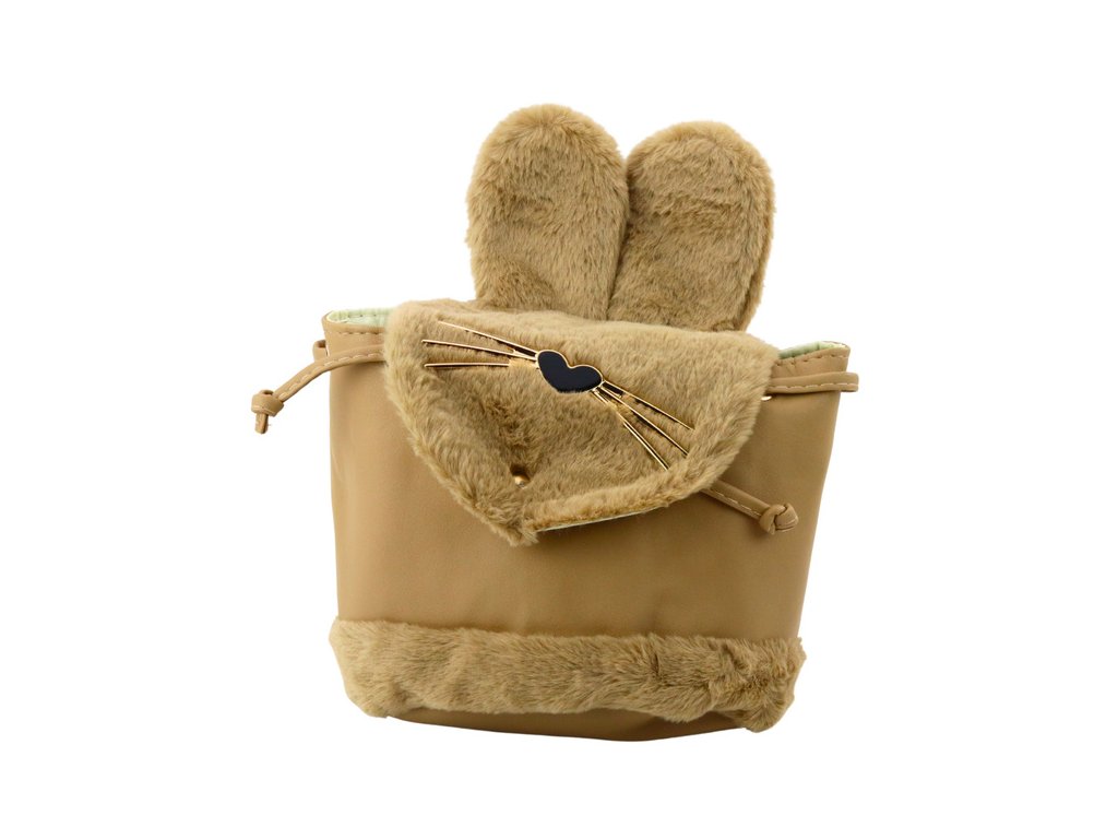 Rucsacul este prevăzut cu urechi de pluș și elemente drăguțe cu iepurași, care îi conferă o notă extra dulce. Un alt accent este detaliul metalic cu inimă și mustață, care face ca rucsacul să arate și mai elegant. Datorită dimensiunilor sale compacte, este confortabil de purtat în spate sau peste umăr.