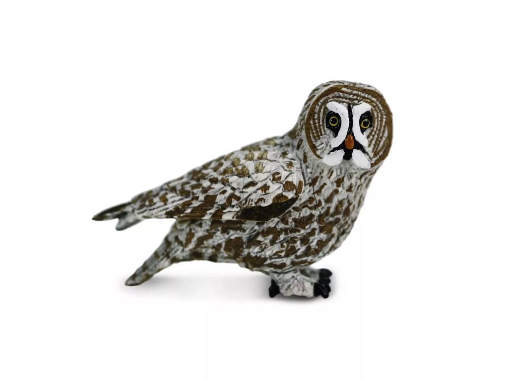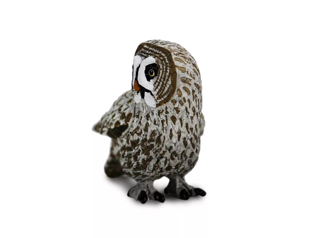 Figurină bufniță urechiată, fin prelucrată, reprezentând o specie de bufniță care trăiește în regiunile nordice mai reci. Potrivită ca accesoriu pentru activități educaționale și pentru joacă liberă.