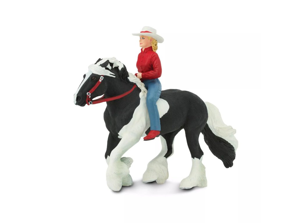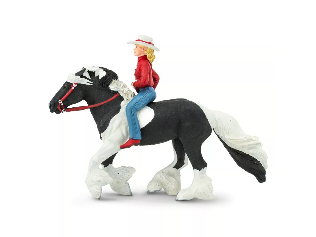 Figurină din plastic prelucrată în detaliu, reprezentând-o pe călăreața Audrey pe un cal din rasa Streaming Light, ușor de recunoscut datorită părului bogat de pe picioare și a coamei și cozii fluturânde.